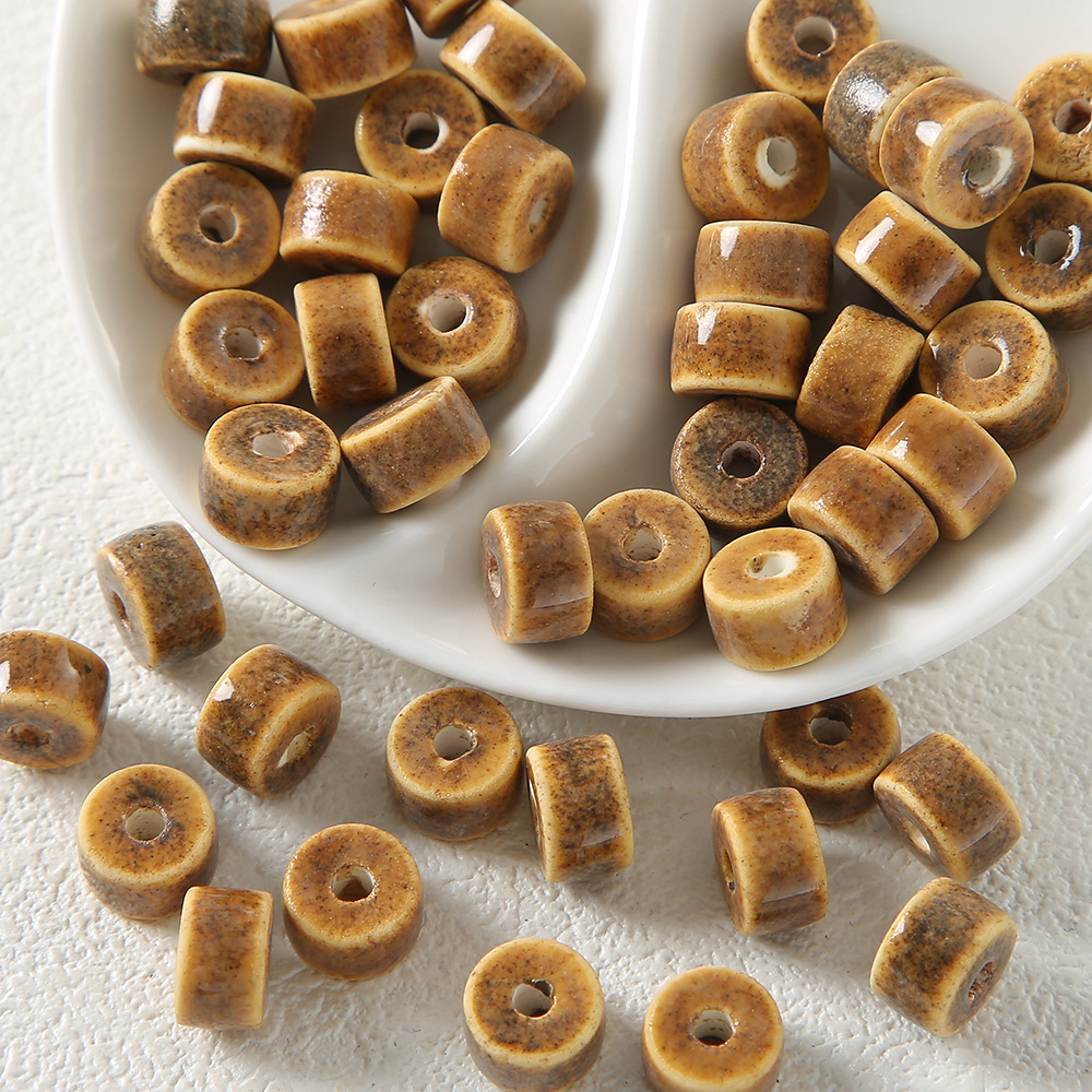 秋冬乳茶色立体陶磁器ビーズDIY手作り材料古風ブレスレットネックレスピアスぼかしビーズアクセサリー