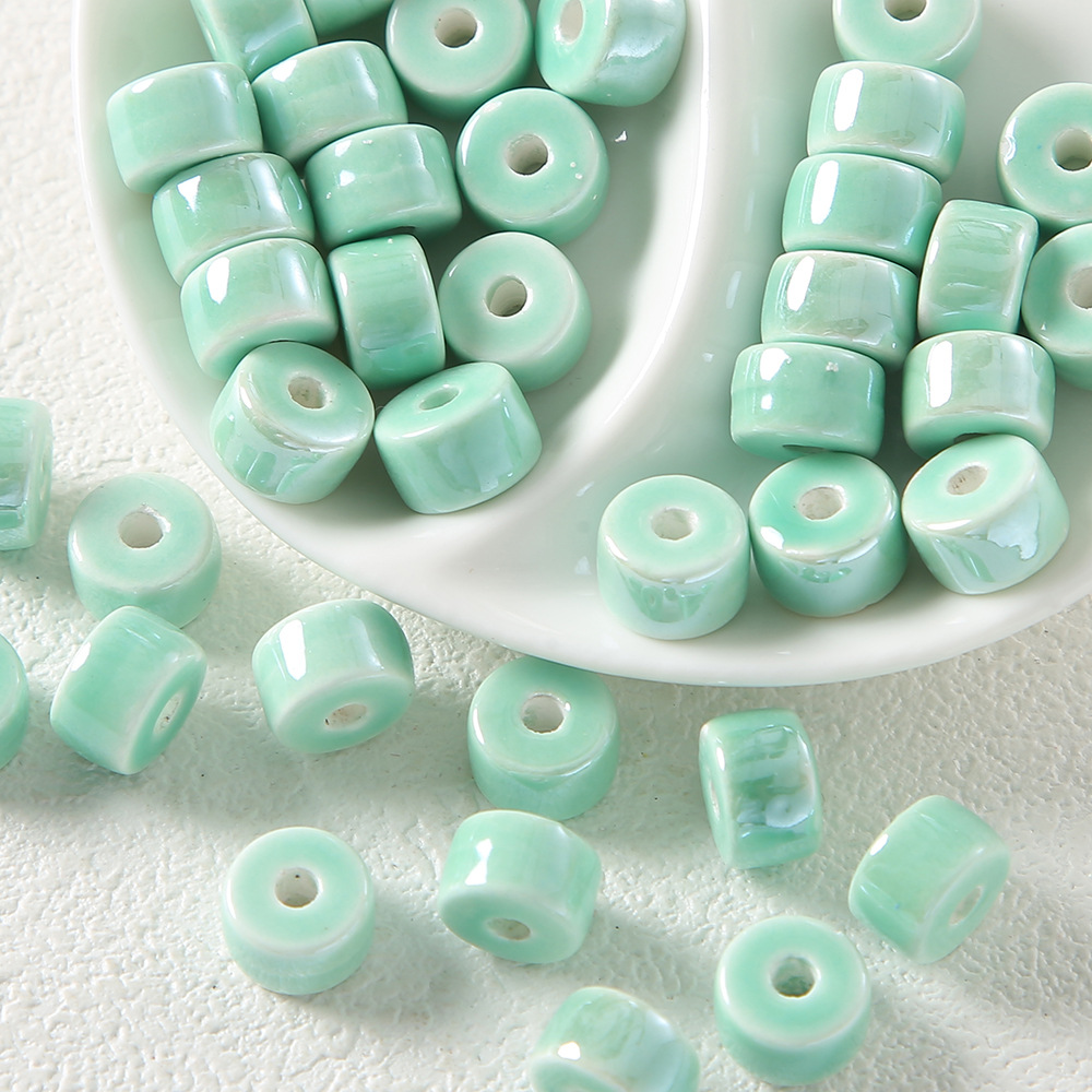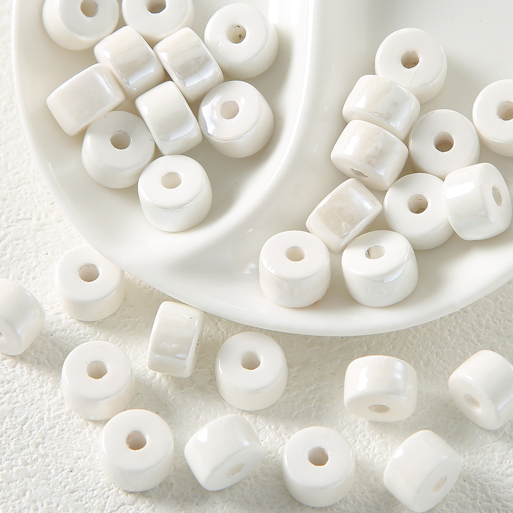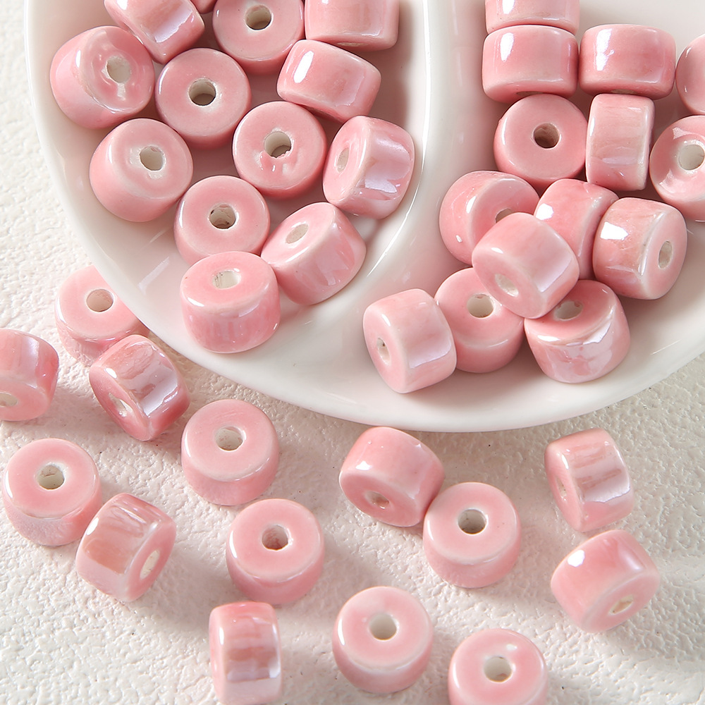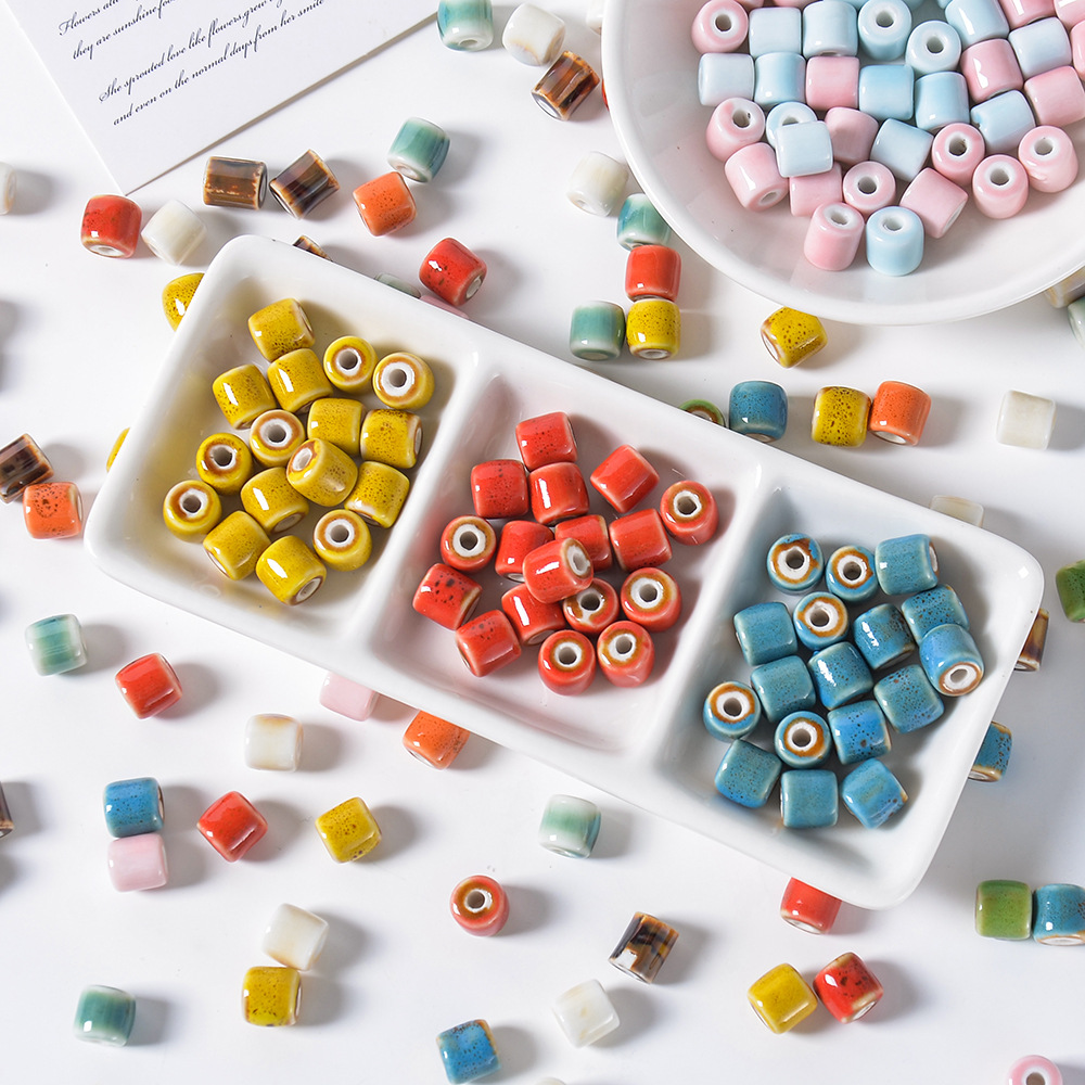 陶瓷新款花釉窑变圆柱直孔散珠 手工diy手链表带尾珠材料串珠隔珠