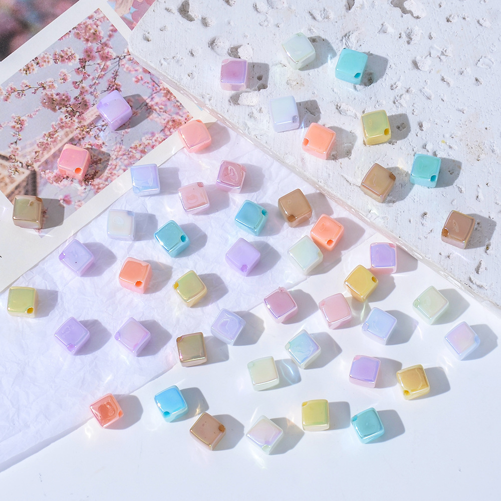 奶油彩色正方形斜孔珠子散珠 手工DIY手链穿孔串珠手机链饰品配件