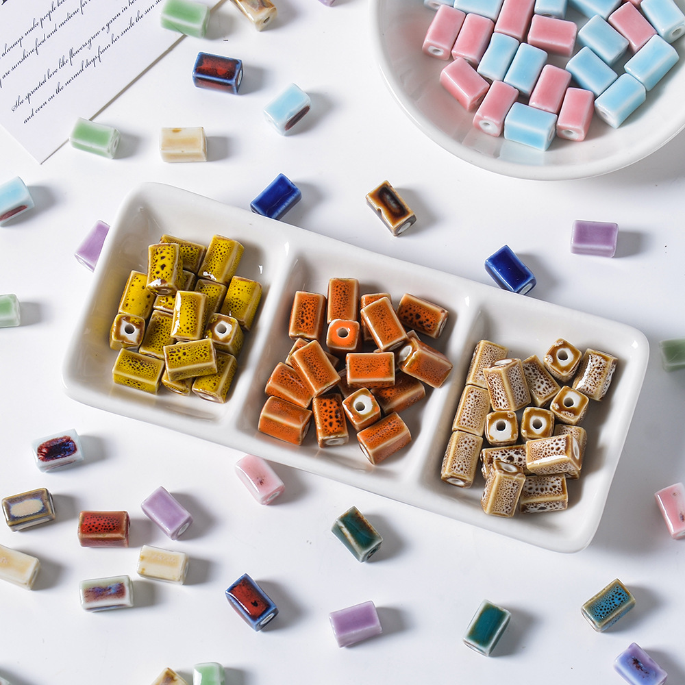 陶瓷四方柱高温窑变花釉散珠子 手工diy材料手链项链饰品配件串珠