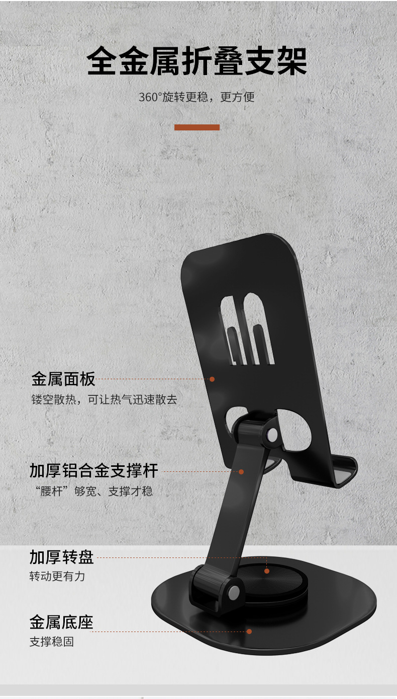 全金属スタンド回転可能携帯電話スタンドipadデスクトップ携帯折り畳み生放送携帯電話スタンド