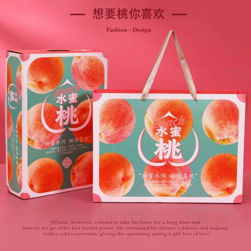 水蜜桃礼盒包装盒空盒子简约桃子黄桃通用创意立体手提礼品盒现货