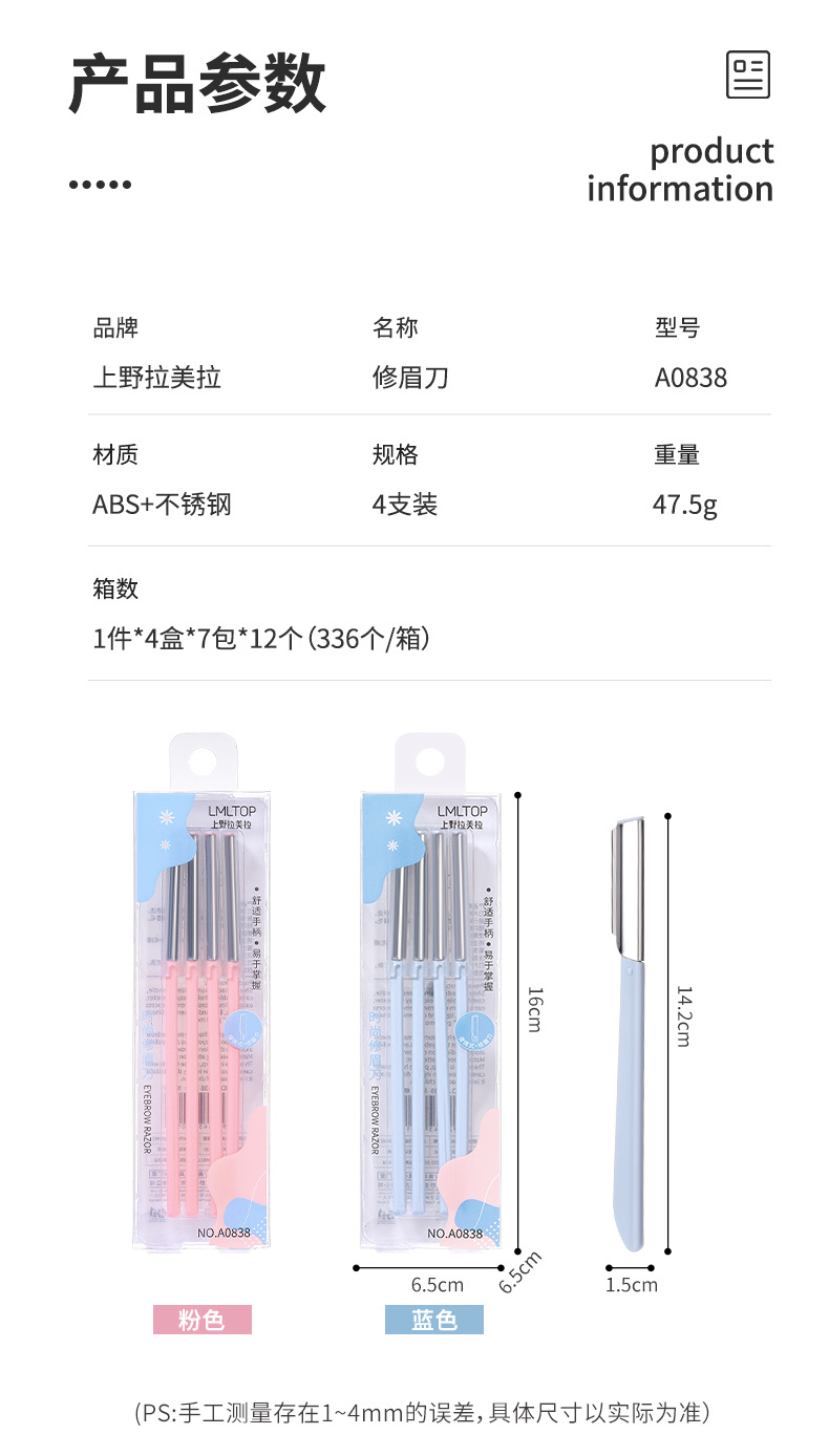 LMLTOPステンレスの鋭利な眉毛修理刀4本の美容院の化粧師が携帯して眉を剃ります。