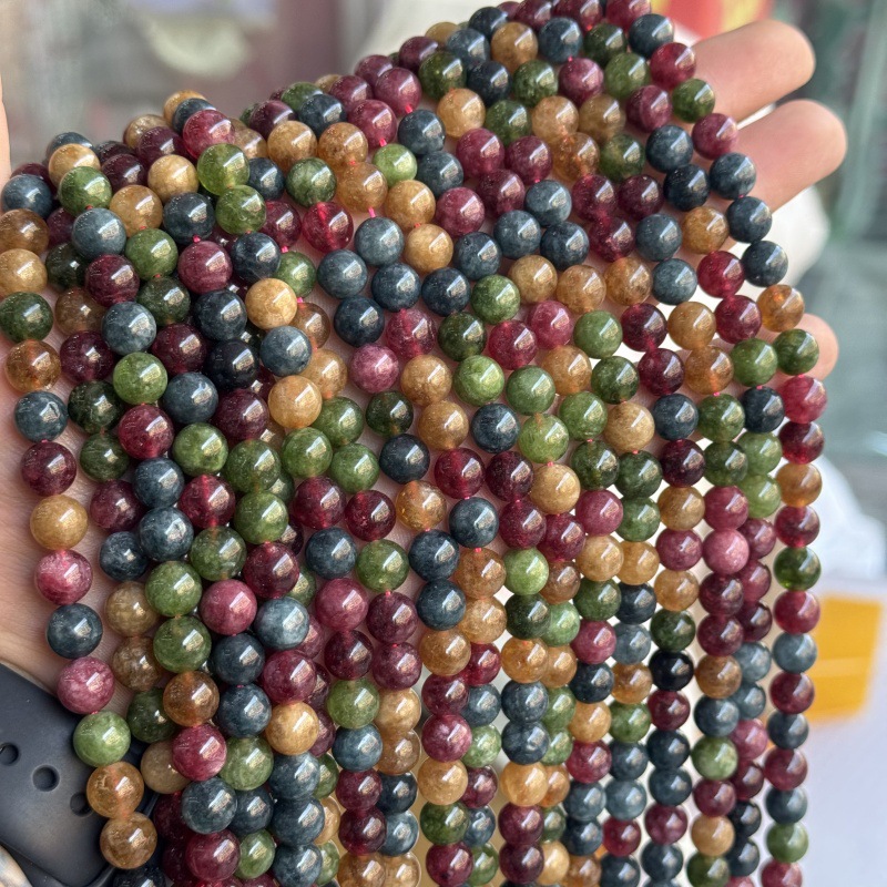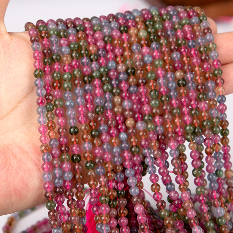 天然トルマリンルースビーズDIYジュエリーアクセサリークリスタルカルセドニービーズストリングビーズブレスレットネックレスアクセサリー卸売