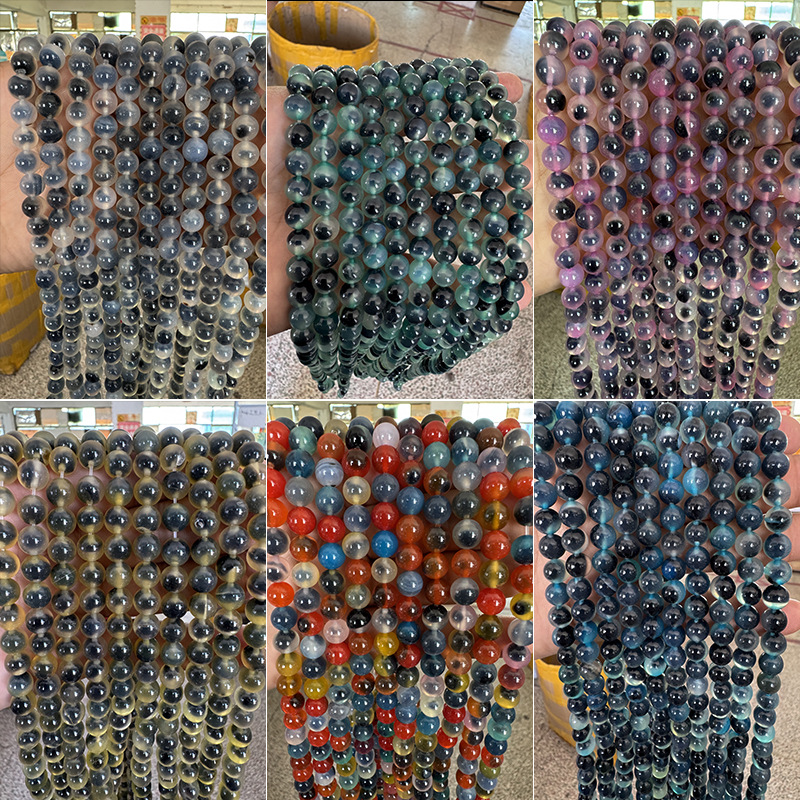 8mm彩色糖心玛瑙散珠碧玺色玛瑙圆珠DIY饰品天然石配件串珠子批发
