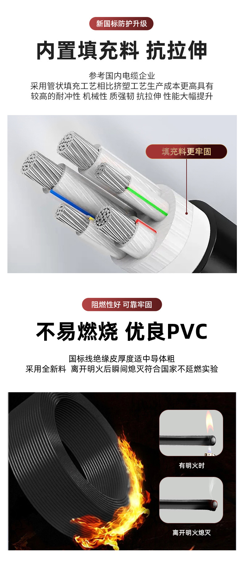 中国標準民用五芯pvc材質保護カバー線家装工業黒保護カバー線電気設備電線ケーブル