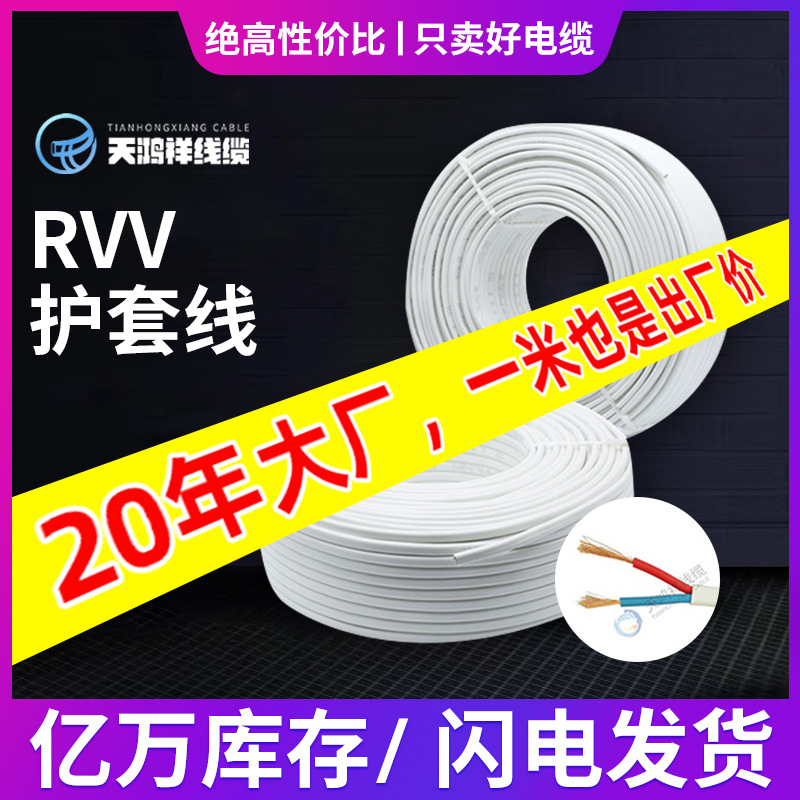 天鴻祥メーカーのソース2*1ジャケットの家装工事絶縁電線ケーブル2芯PVCジャケット線