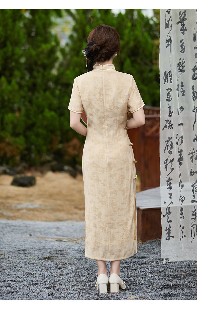 2024年新作チャイナドレス三分袖レディースレトロスリムドレス中国風春秋タイプママチャイナドレス若手タイプ