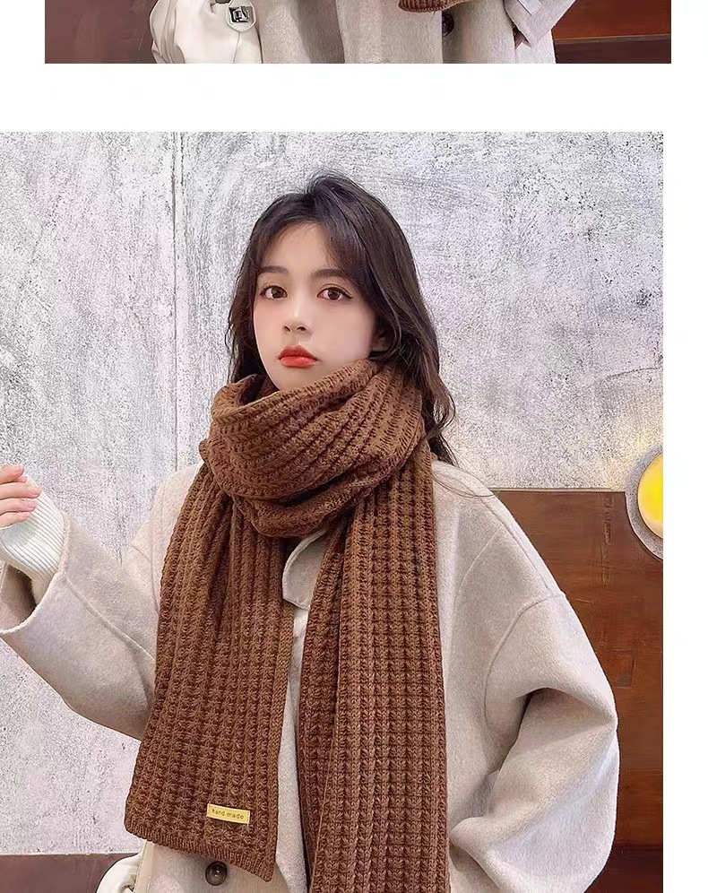 新款冬季韩氛围感网红学院风仿羊绒针织围巾围脖情侣百搭时尚刺绣