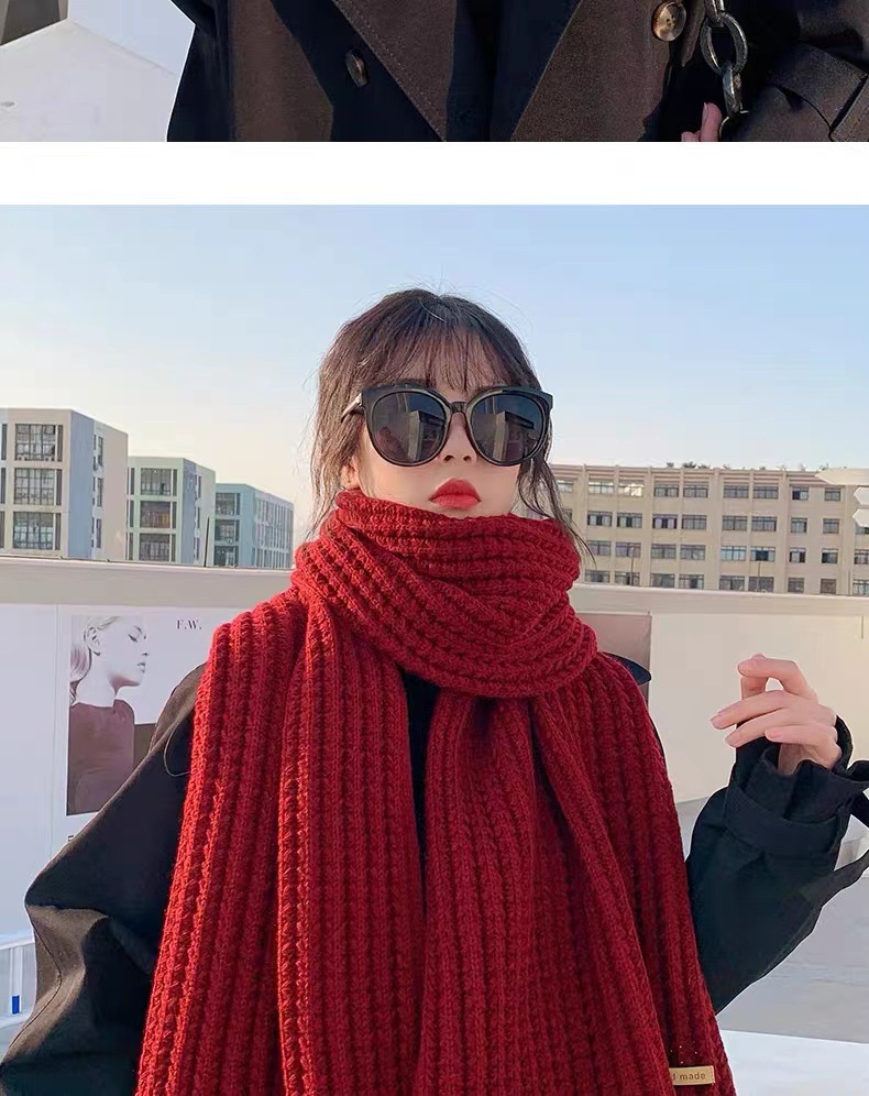 百合韓国版ニット毛糸赤いマフラー女性2024新型冬高級感新年プレゼントカップルマフラー