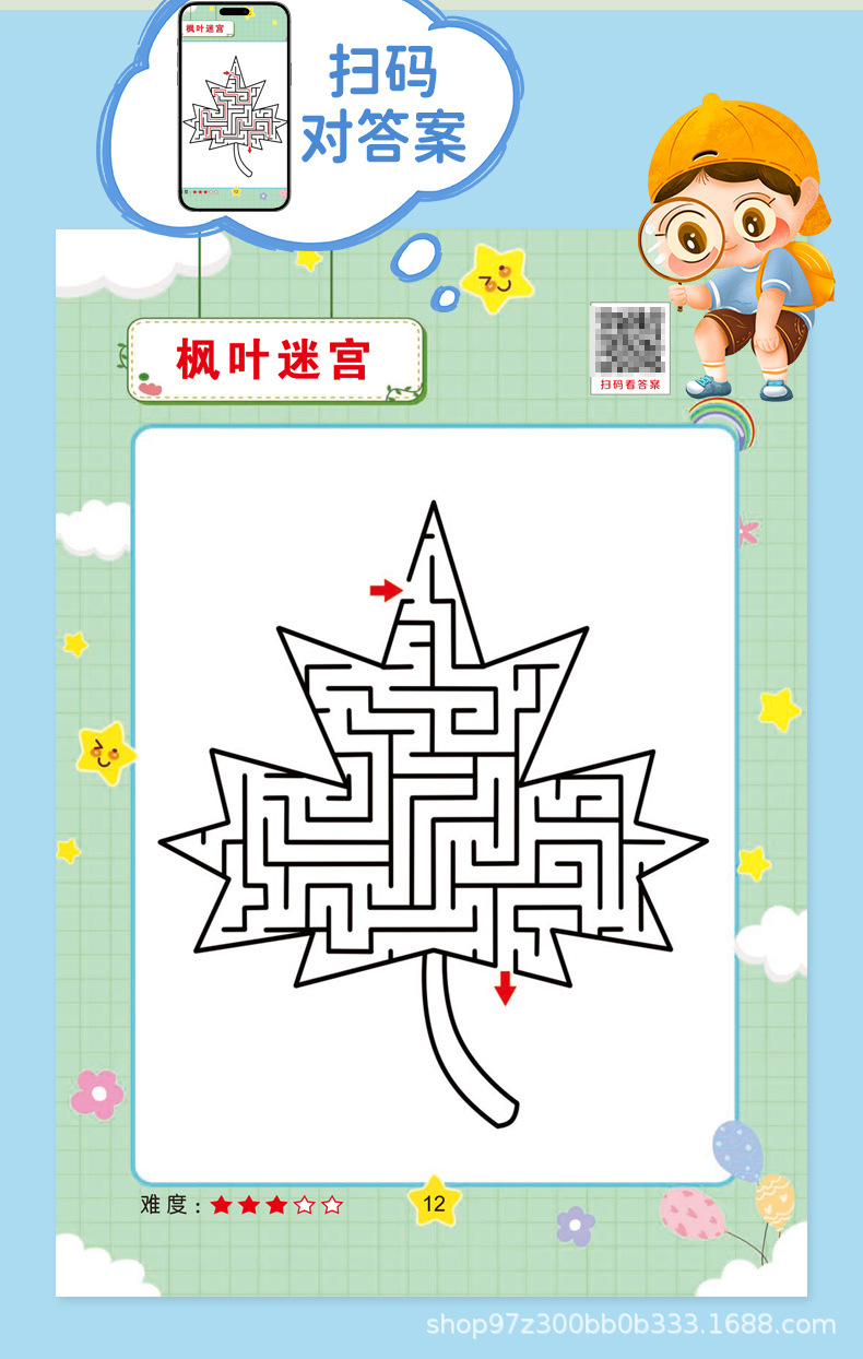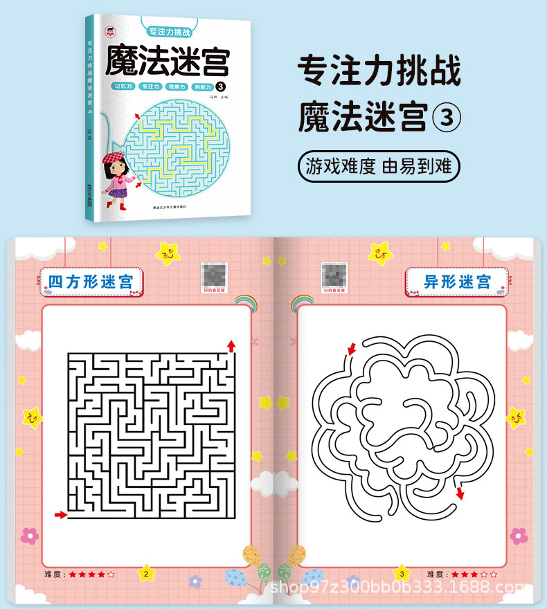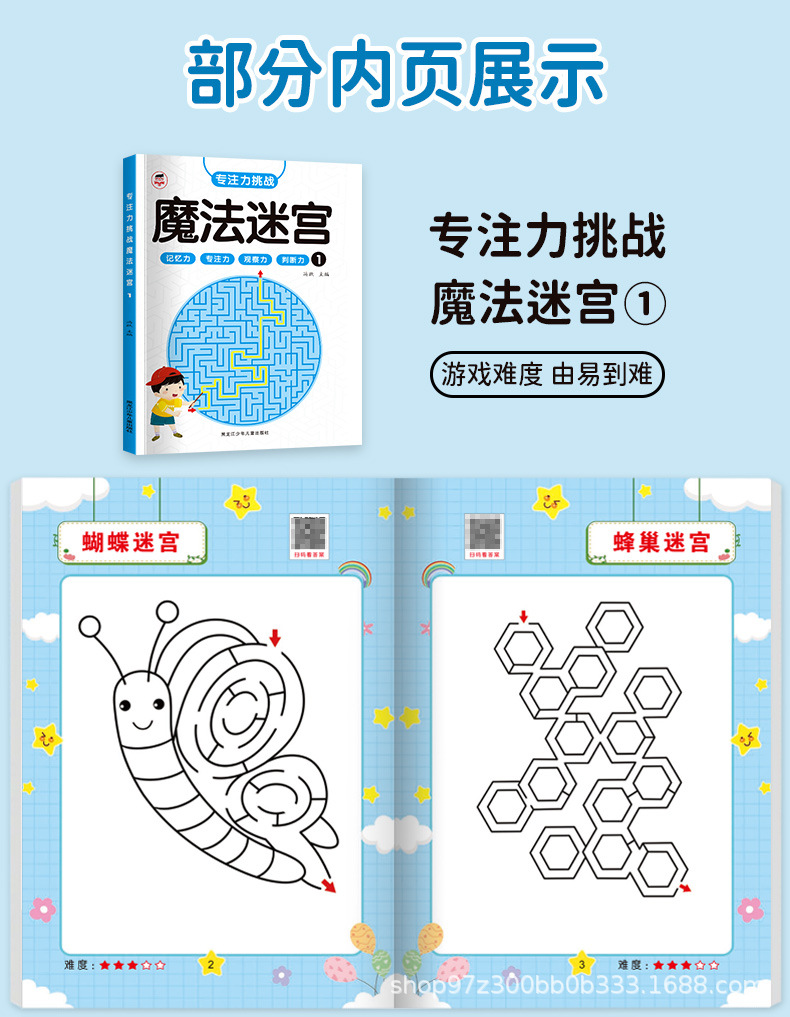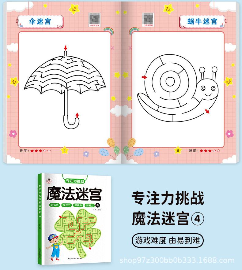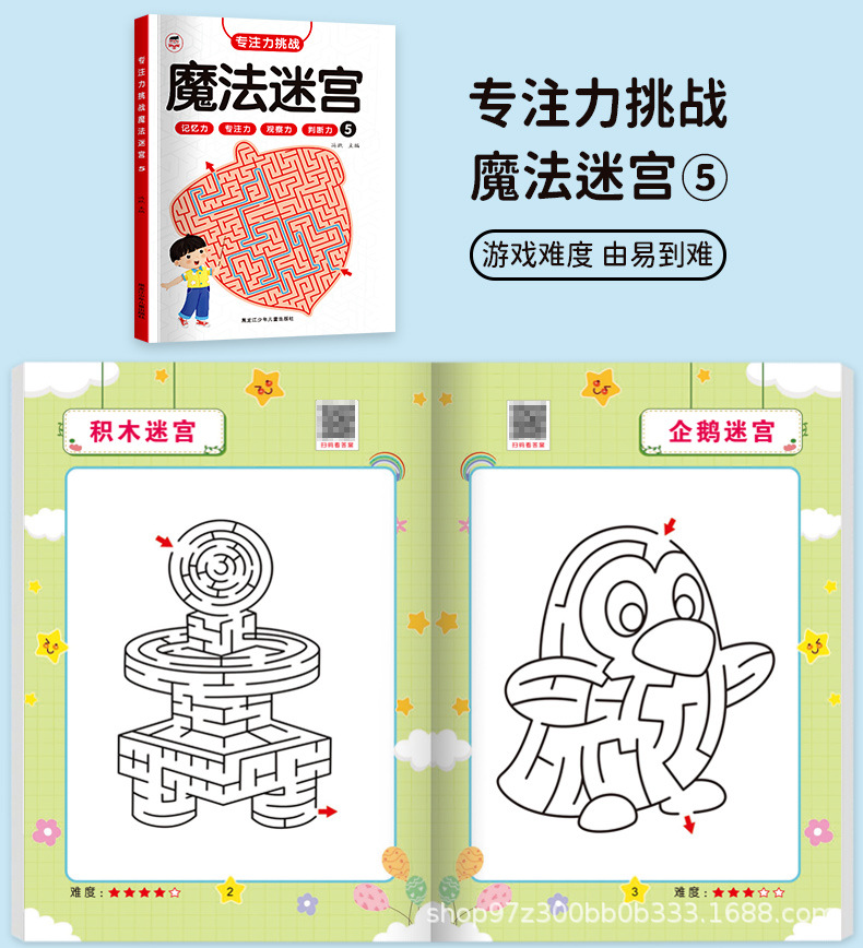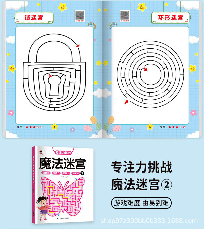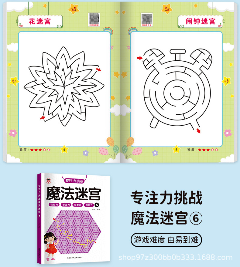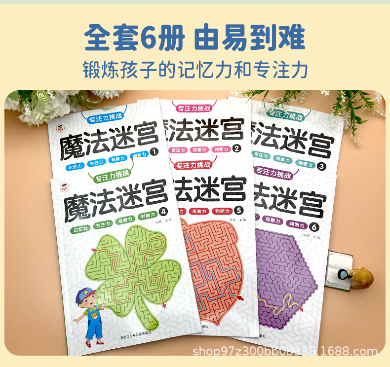 魔法の迷宮の小学生の少ない子供は力の訓練に集中して赤い本を描きます。