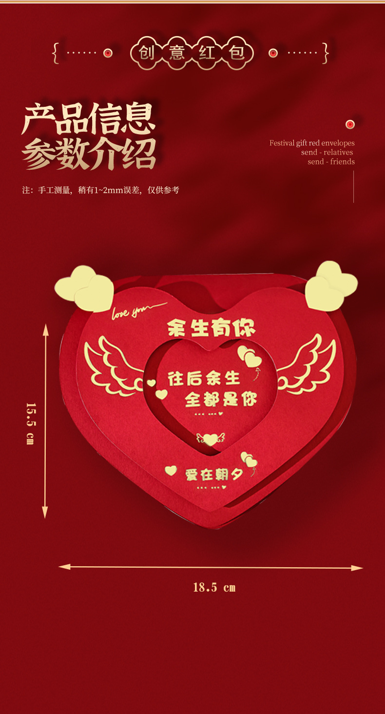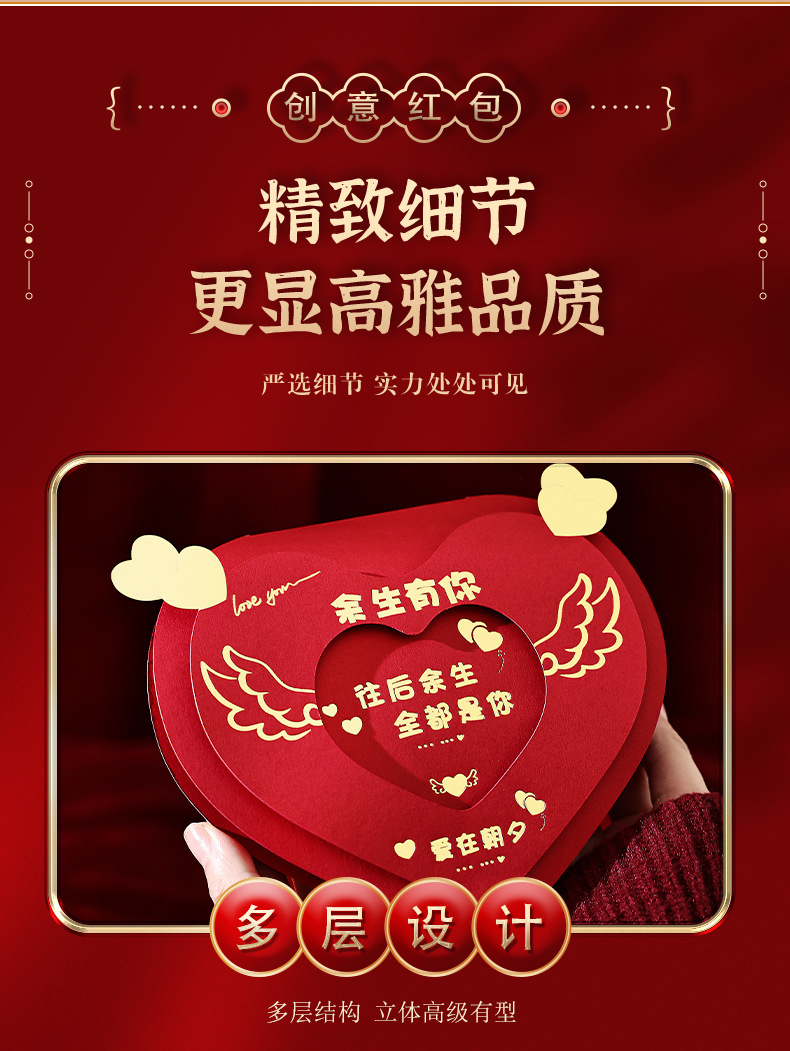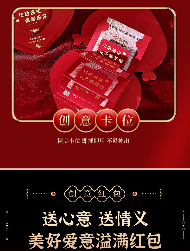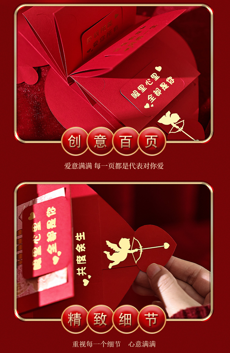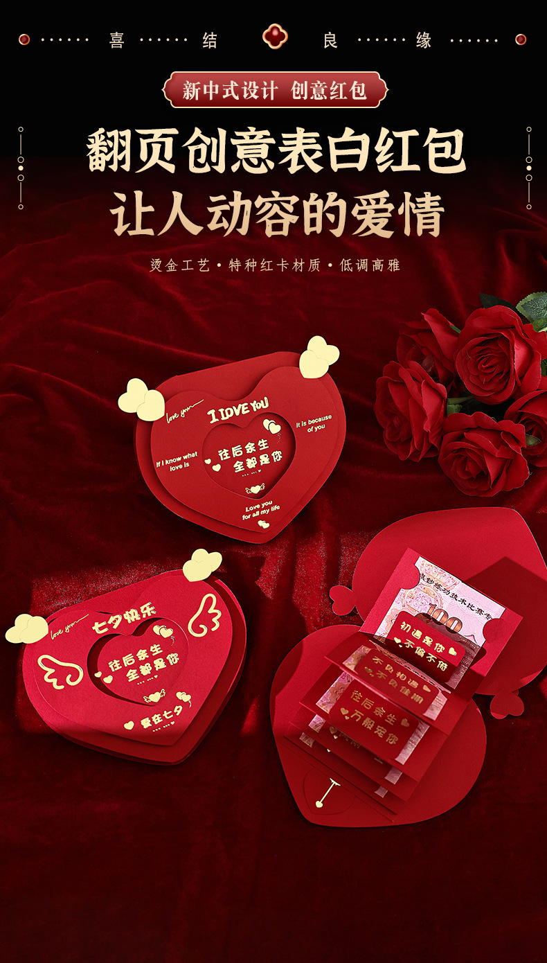 新年あけましておめでとうございます。愛を込めた紅包、新しい折りたたみ式のカップル向け告白用、彼氏彼女や妻への誕生日プレゼント、お年玉に。