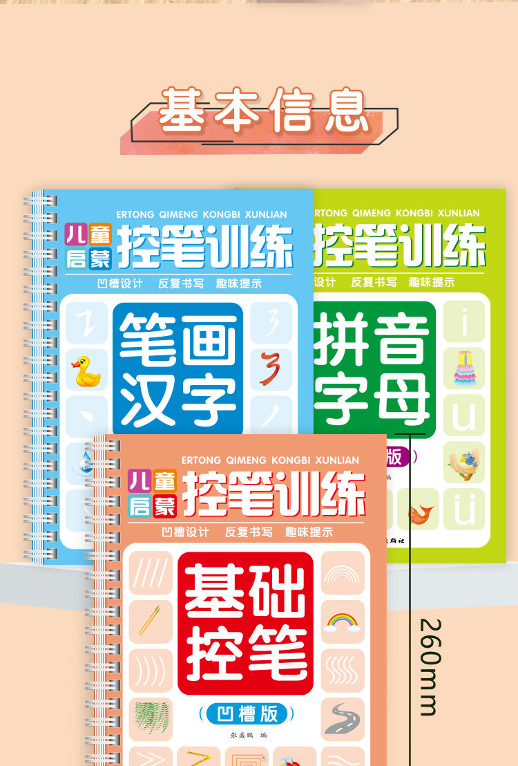 就学前600字児童幼稚園の中の大クラス幼児入門点陣制御ペン訓練漢字描紅本卸売り
