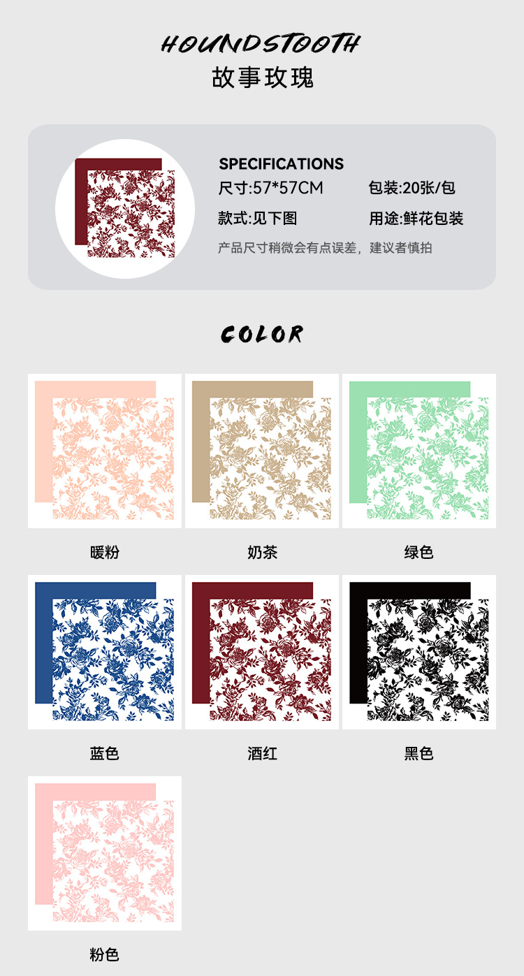 七色すみれ物語バラシリーズ花束包装紙包み花新鮮な花束手作り花芸花包装材料