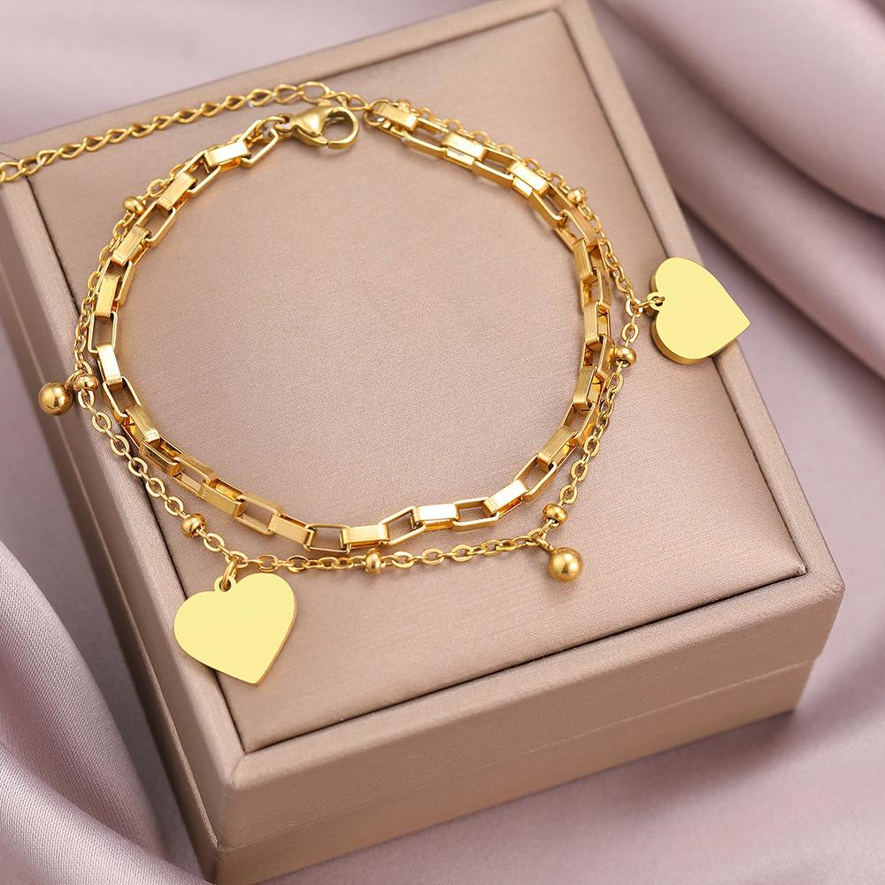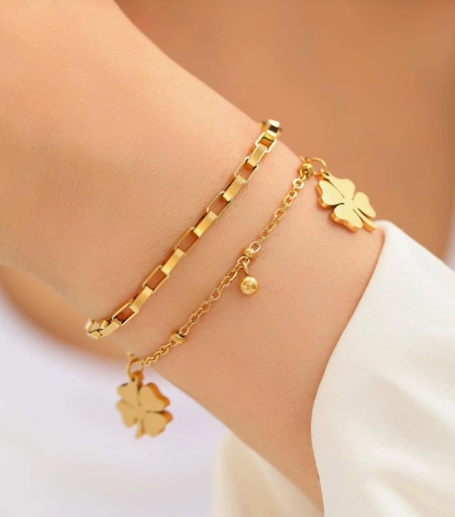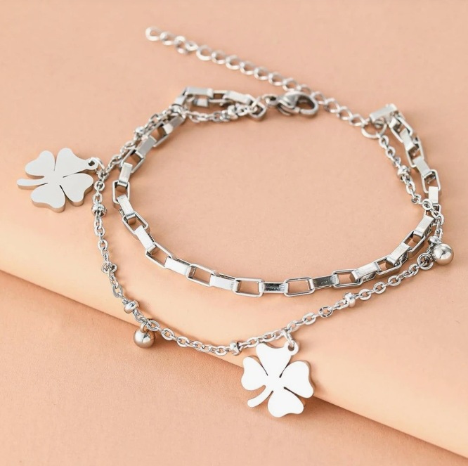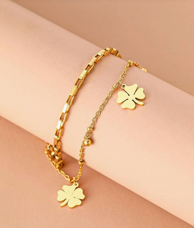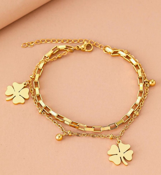 欧米の気質ins四葉草ペンダント宮廷風少女二重ファッションブレスレットは色落ちしないチタン鋼のアクセサリー