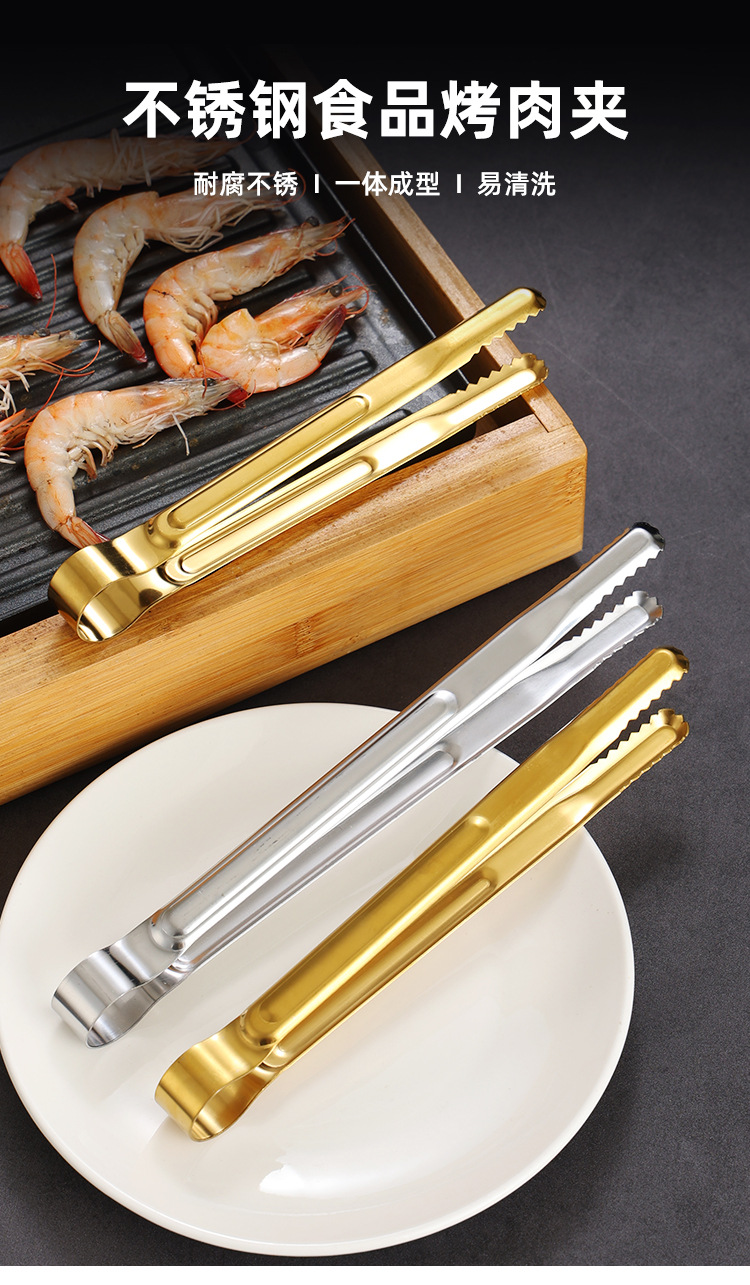 韓国式焼肉クリップステンレスバーベキュークリップステーキクリップキッチンパンクリップ延長バイキング焼肉クリップ金色