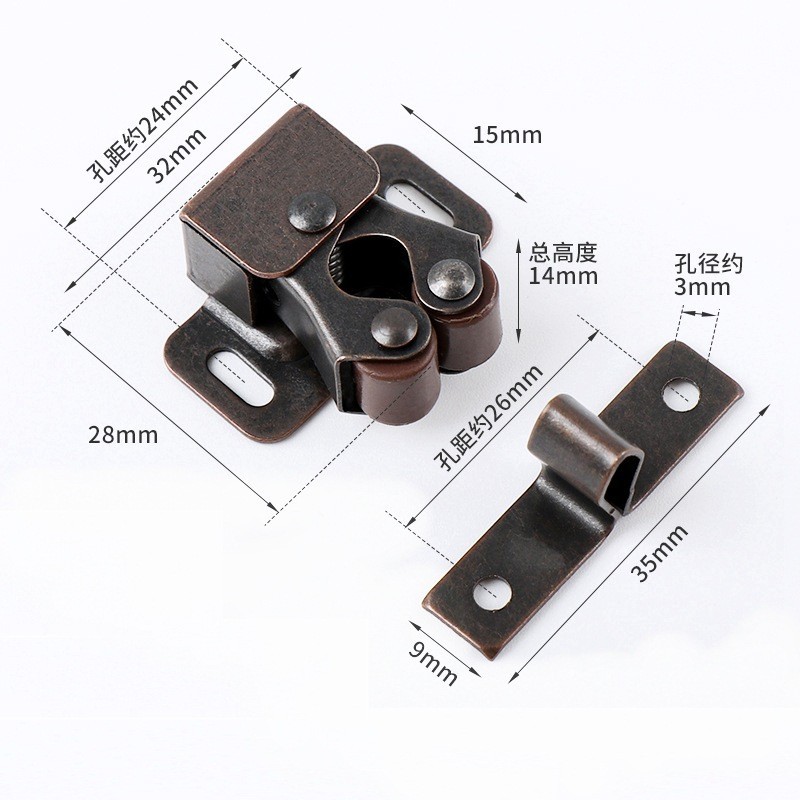 古風な旧式の高い足の2輪のスプリングのドアの挟みはタンスの戸棚のドアを掛けます。