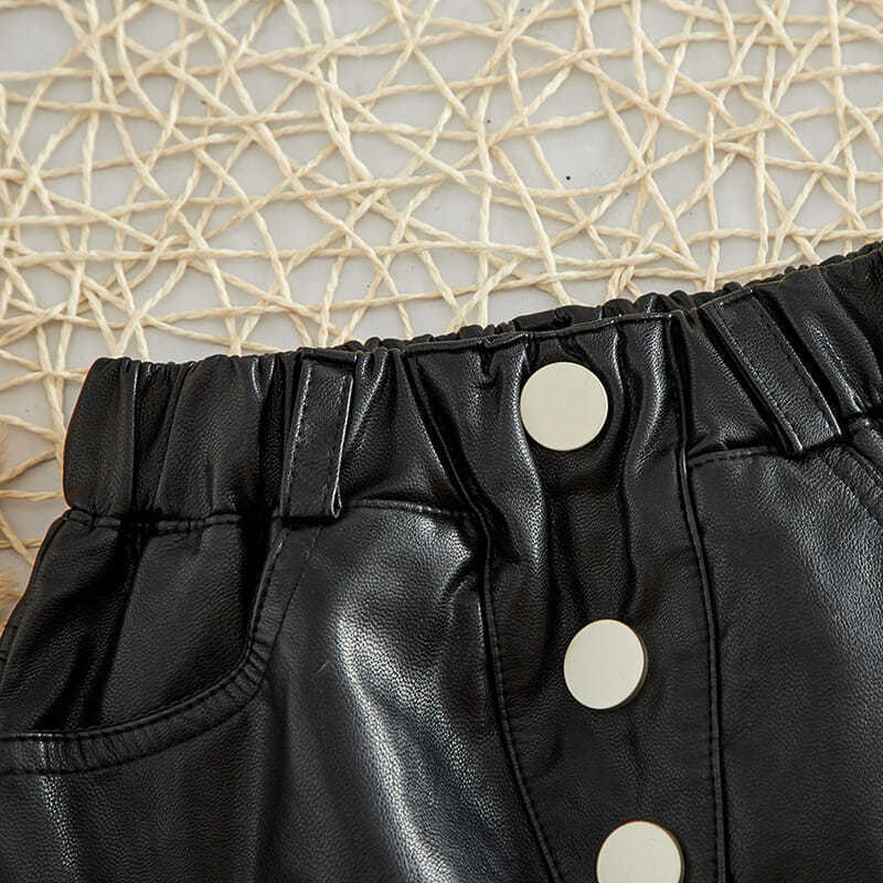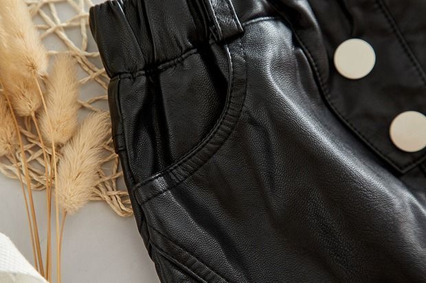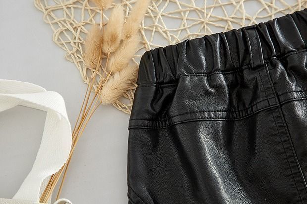 子供服の女の子の皮の半ズボンの外は春と秋の韓国版の子供服の新型の潮の中の大きい子供のpu皮の熱いズボンのズボンを着ます。