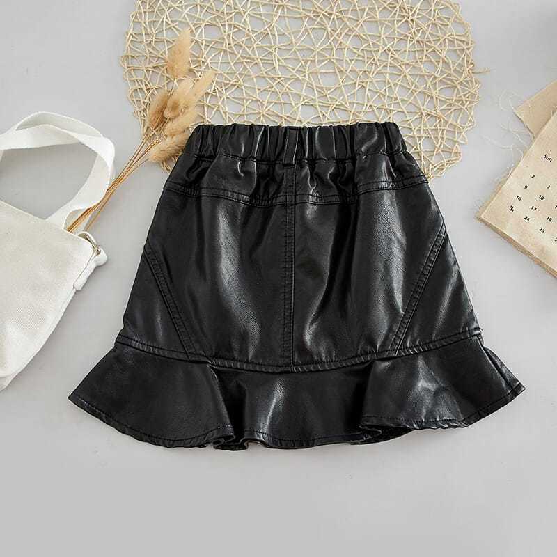 韓国の子供服秋冬新作女の子のスカート子供のスカートpu皮の魚の尾の中の大きい子供の女の子は尻のスカートを包みます。