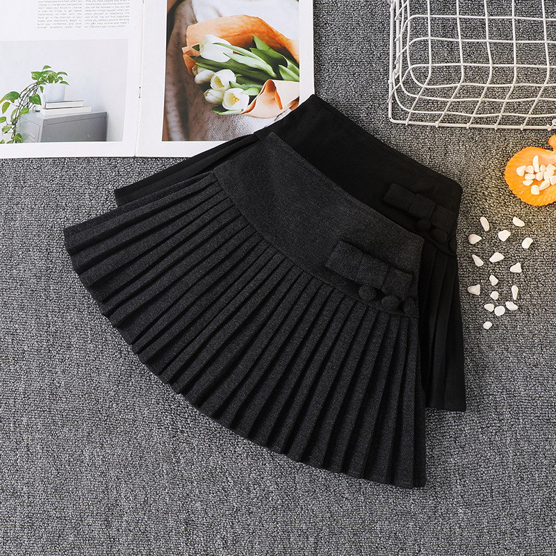 女童半身裙裤高腰法式毛呢短裙子秋冬季新款加厚黑灰色a字百褶裙4