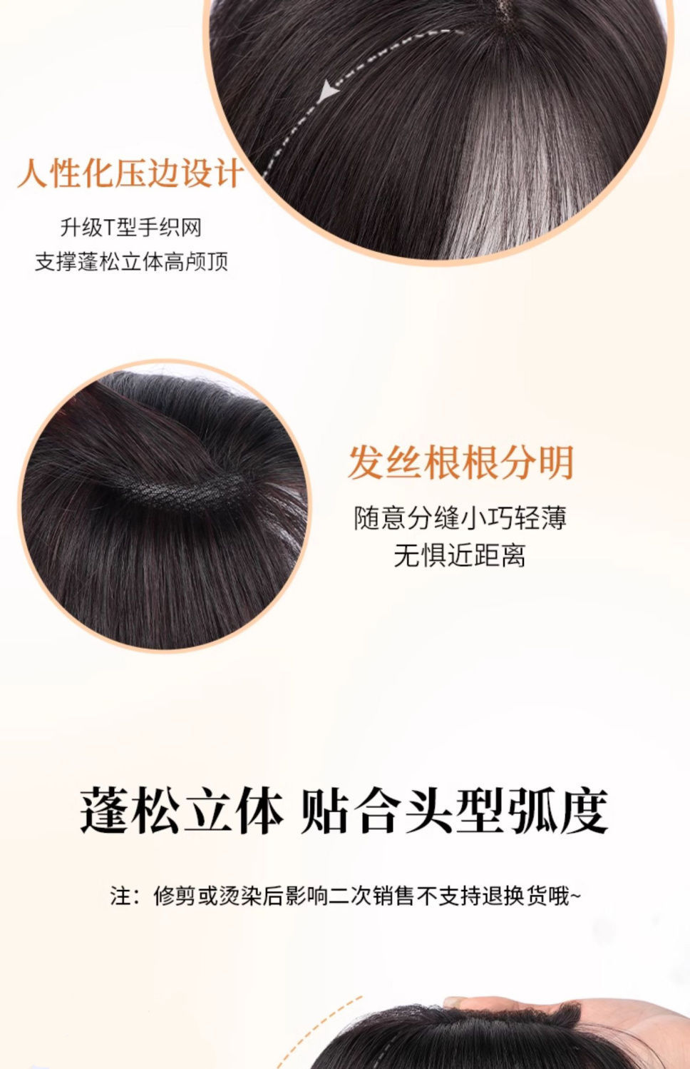 假发女头顶假发片遮白发假发真人发丝手织无边头发增高颅顶假发片