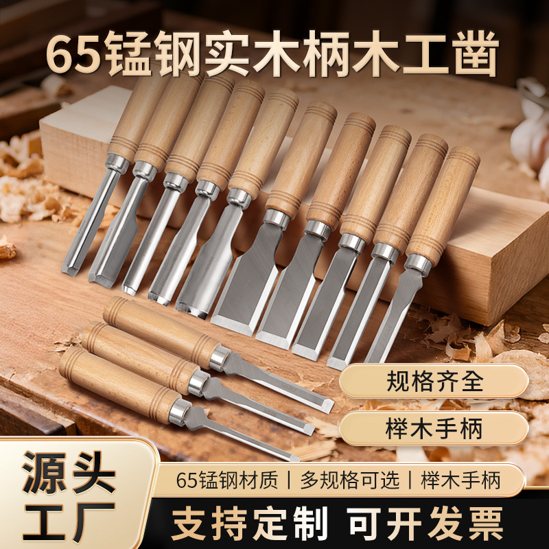 木工凿子锰钢扁平凿子榉木手柄平凿手工开槽雕刻半圆凿工具套装