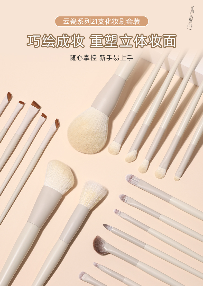 クラウド磁器メイクブラシ21本セット鎌アイラインアイシャドウバルクパウダーファンデーションチークブラシフルセットブラシソフト