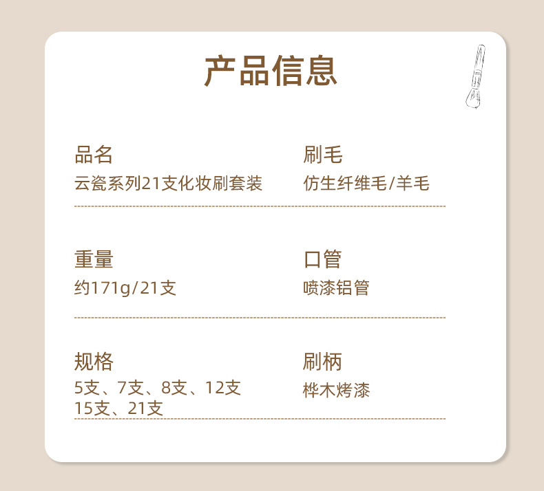 外観カラー 雲磁器5本化粧ブラシ,クラウド磁器化粧ブラシ7本,8本の化粧ブラシ,クラウド磁器12本化粧ブラシ,雲磁器15本の化粧ブラシ,雲磁器21本化粧ブラシ