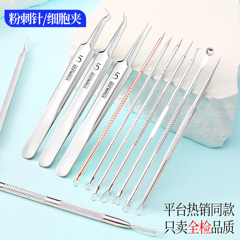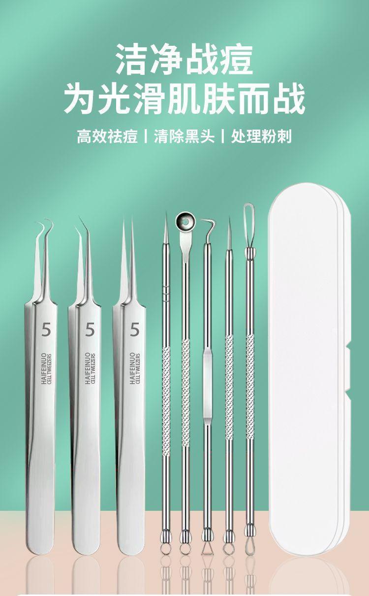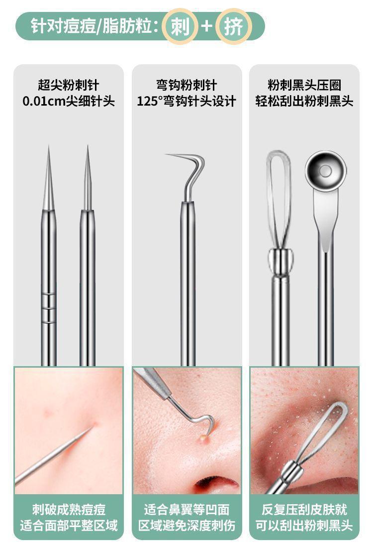 代发粉刺针套装不锈钢粉刺夹细胞夹祛痘5件套黑头暗疮针美容工具