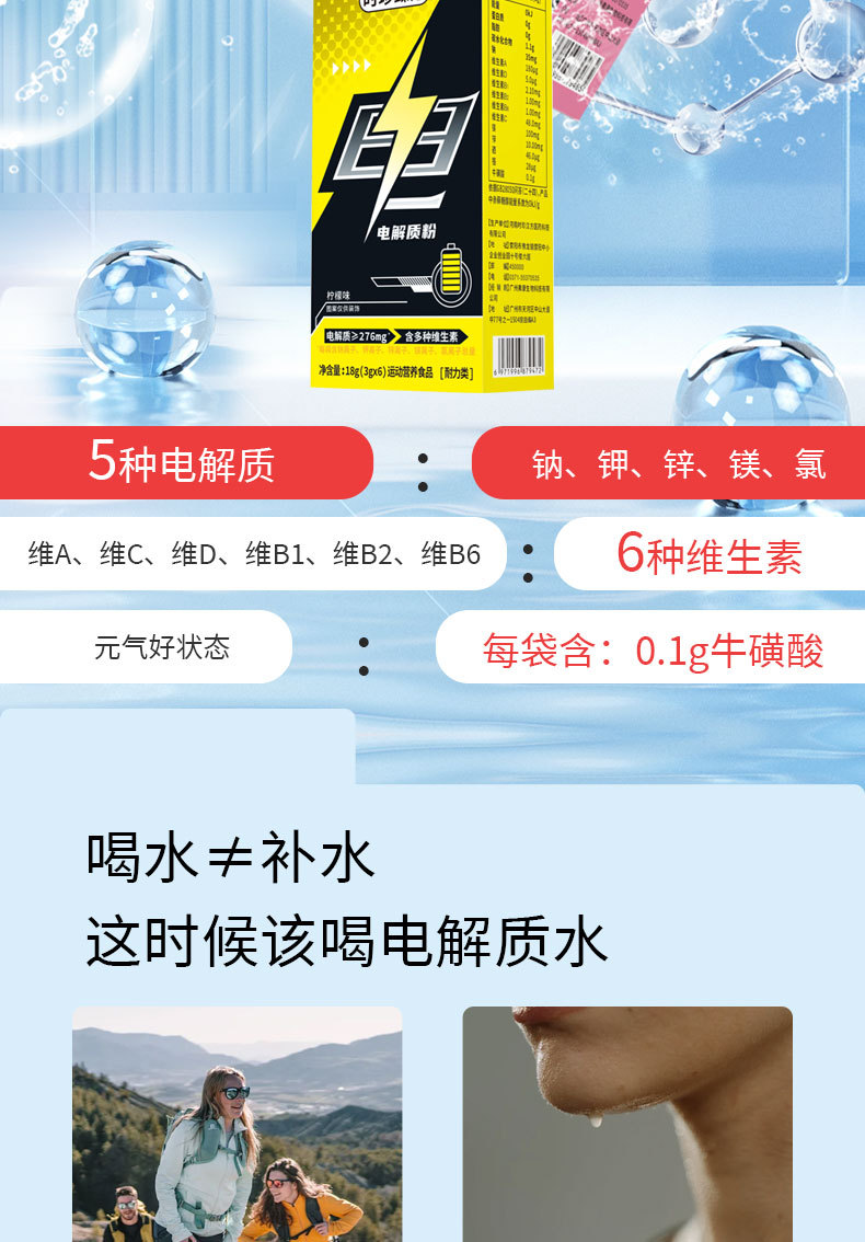 无糖电解质冲剂电解质粉牛磺酸电解质能量饮料运动无糖电解质水