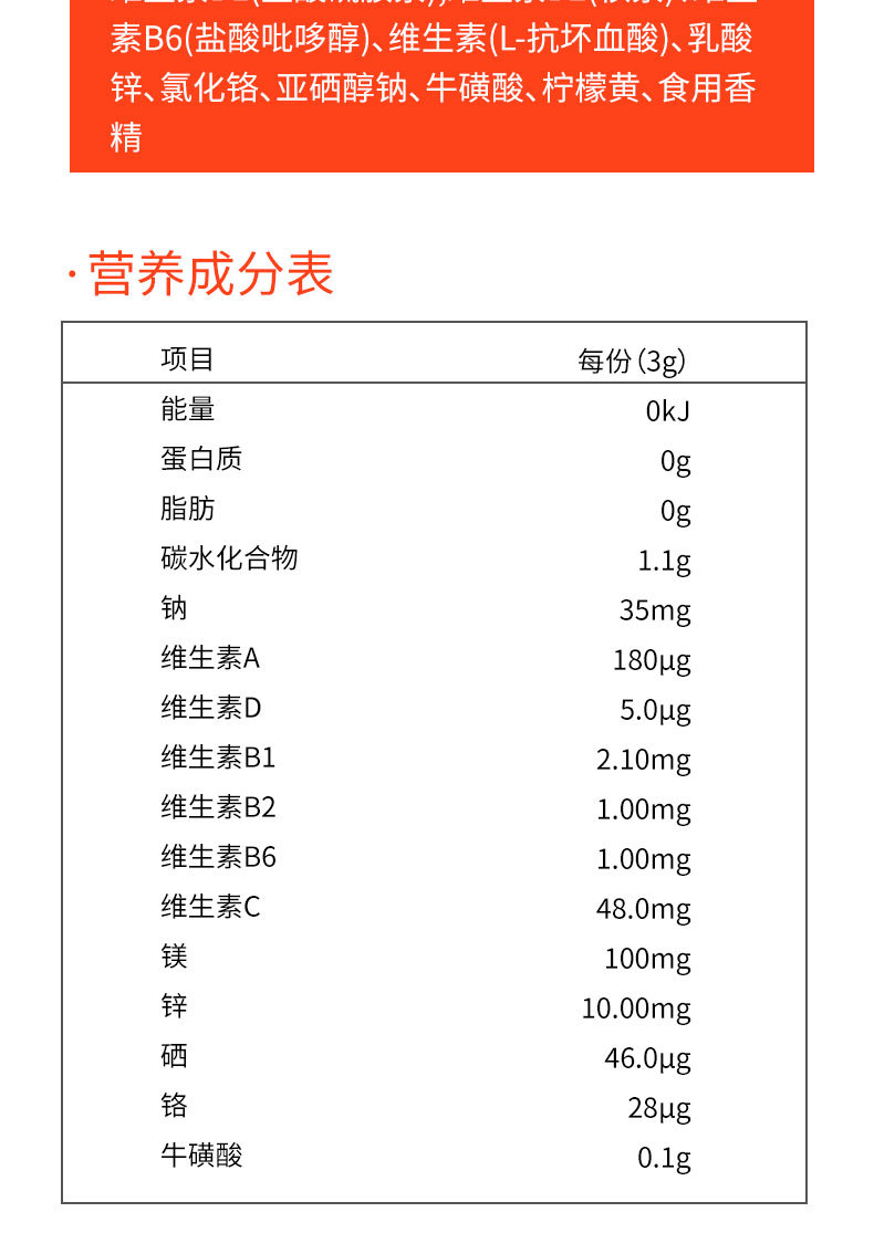 无糖电解质冲剂电解质粉牛磺酸电解质能量饮料运动电解质水代发