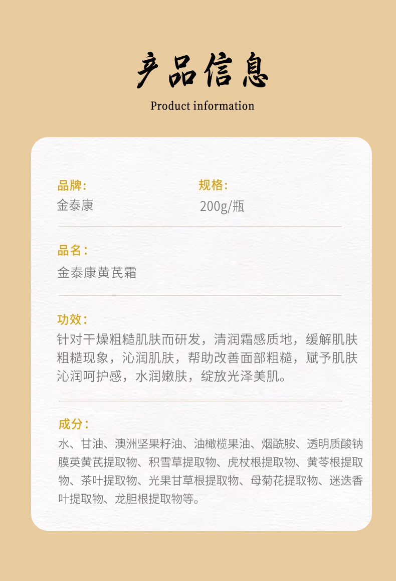 国货金泰康黄芪霜滋润补水保湿提亮肤色改善肌肤暗沉细腻毛孔面霜