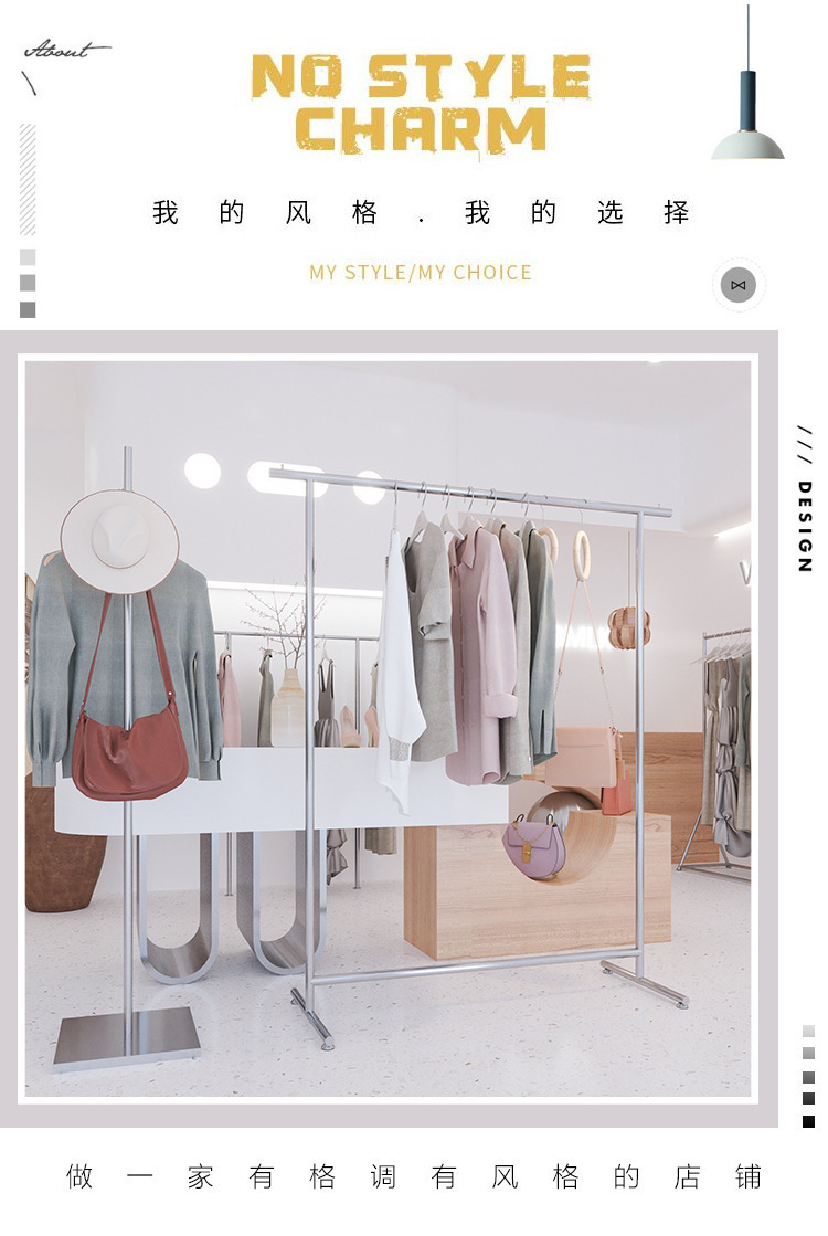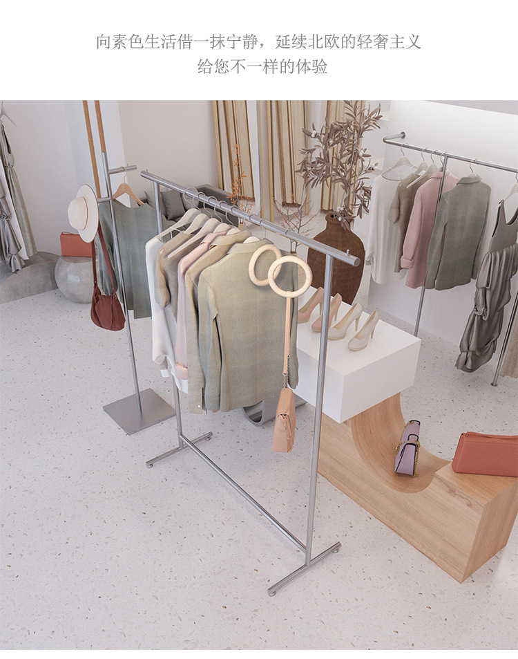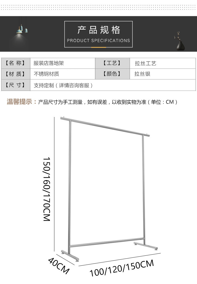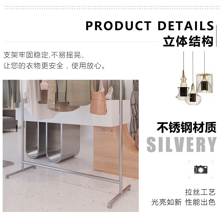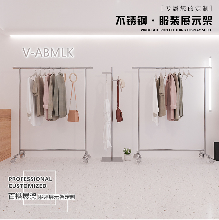 洋服店展示棚ステンレス製伸線銀床置き式ハンガー男性女装童装店シンプル専用棚