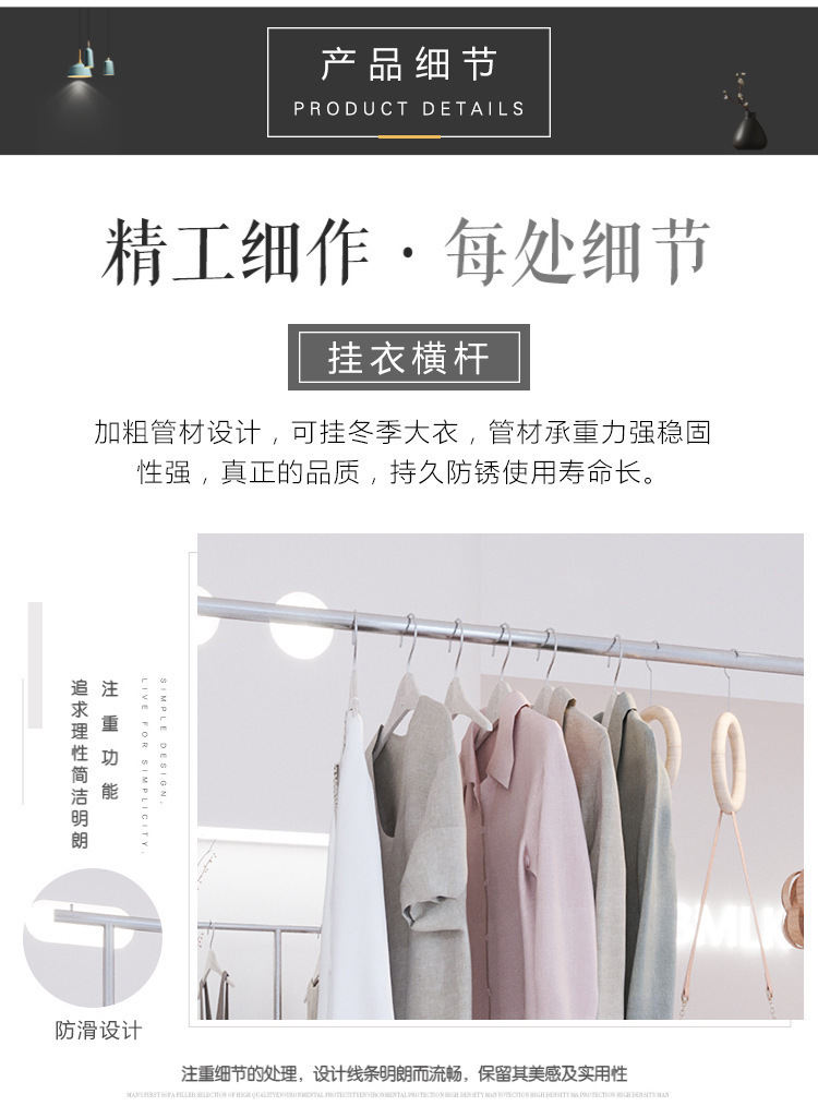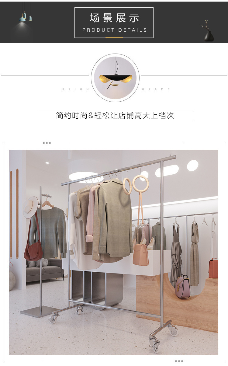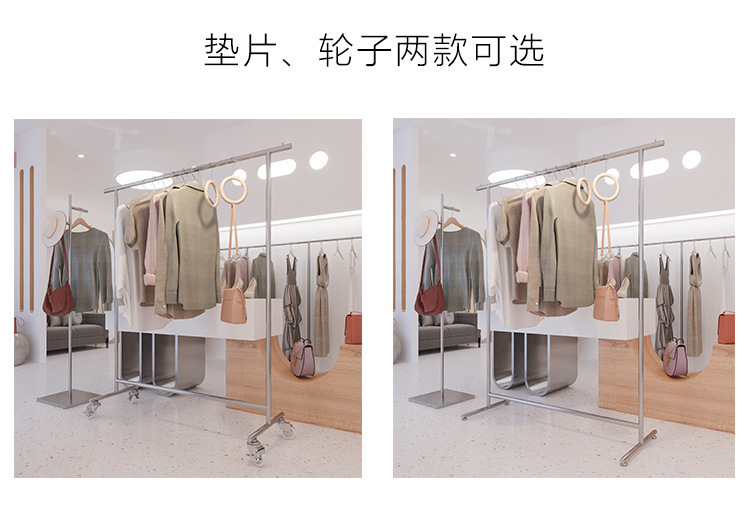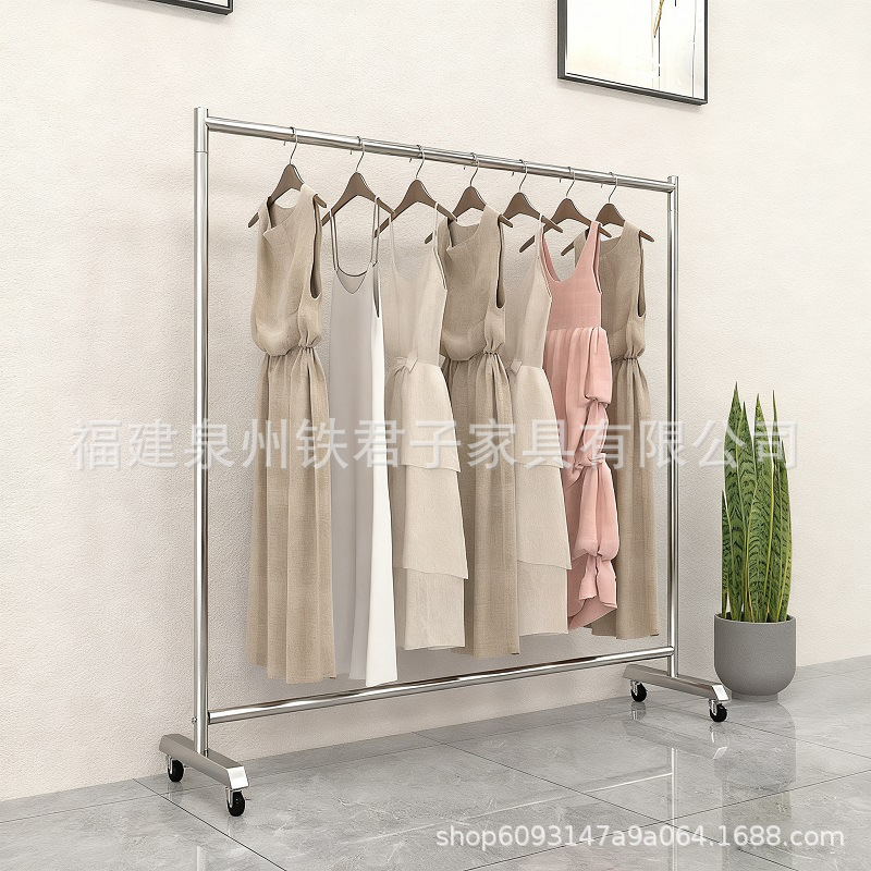服装店展示架落地式挂衣架衣帽架立式卧室阳台晾衣架可移动带轮子