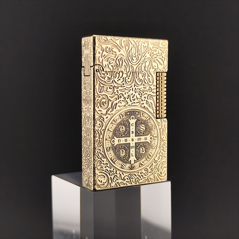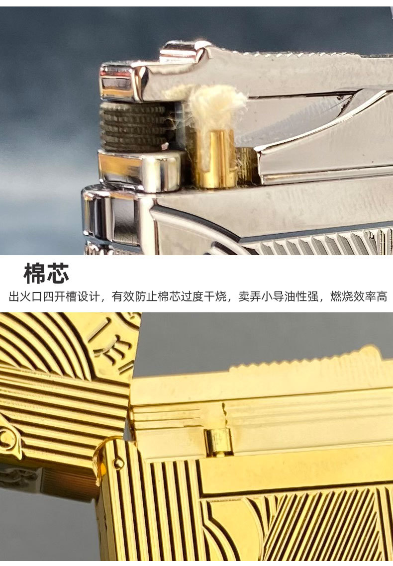 好运达R10朗声煤油打火机侧滑经典钢音五面精雕纯黄铜雕刻图案