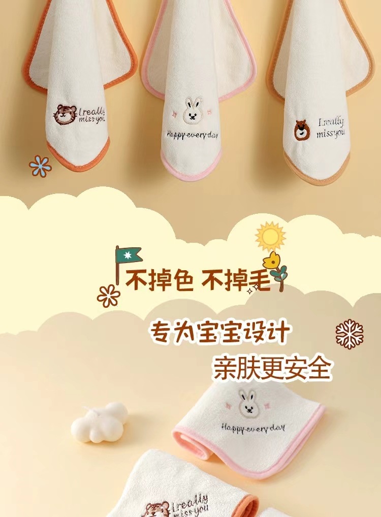 婴儿毛巾 柔软亲肤儿童毛巾珊瑚绒婴儿方巾儿童洗脸毛巾宝宝毛巾