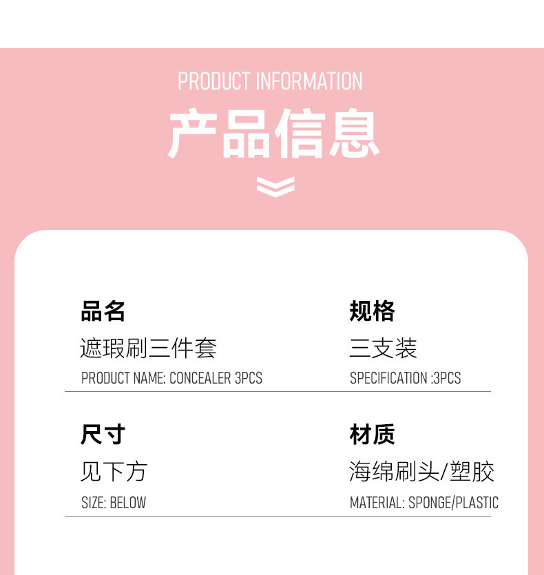 仕様 小さなマントースポンジブラシ,斜め頭カバーブラシ,丸リップブラシ,コンシーラー3点セット,270 コンシーラー ブラシ