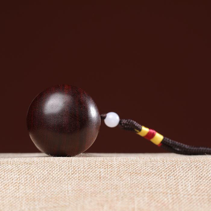 花梨の木の彫刻の取っ手の部品のラオスの黄花梨の取っ手の件の彫刻の工芸品の赤い木の文は飾って黒い縄を送ります。