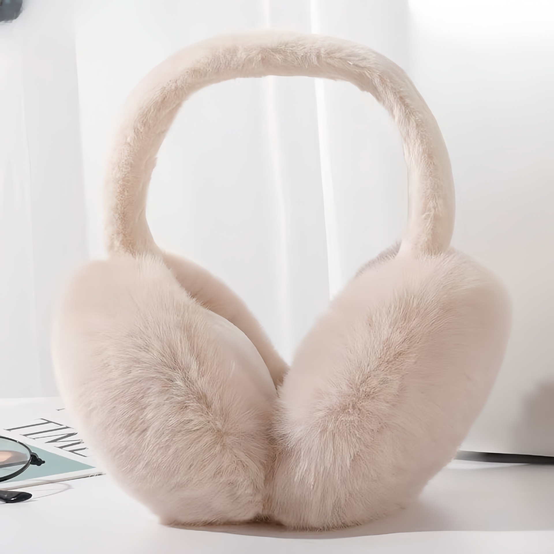 MGCM 折りたたみ式ホワイトイミテーションフォックスファーイヤーマフ、韓国版、無地、暖かいイヤーマフ、冬用女性用豪華イヤーマフ、イヤープロテクター