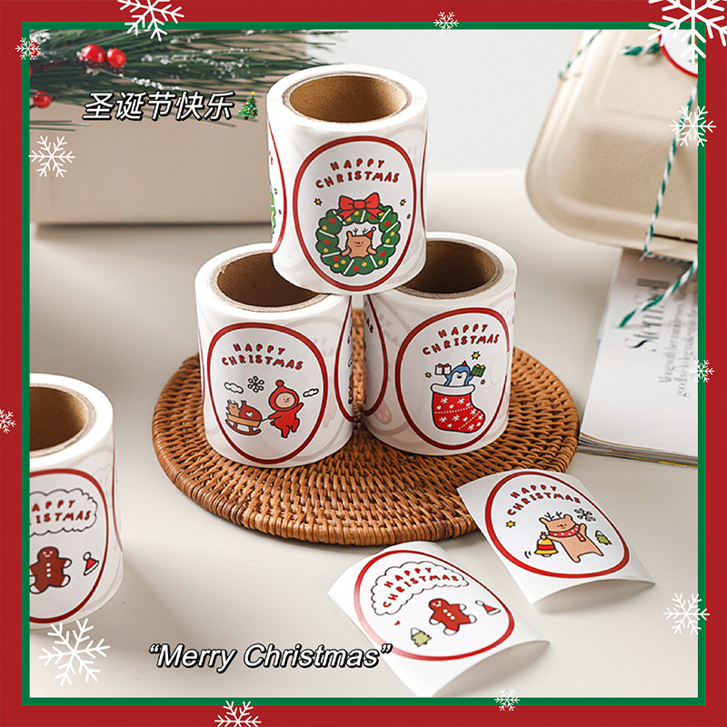 8枚の価格insスタイルのシンプルなクリスマス百組の円形のステッカーの装飾は焙煎シールdiy包装を貼ります。