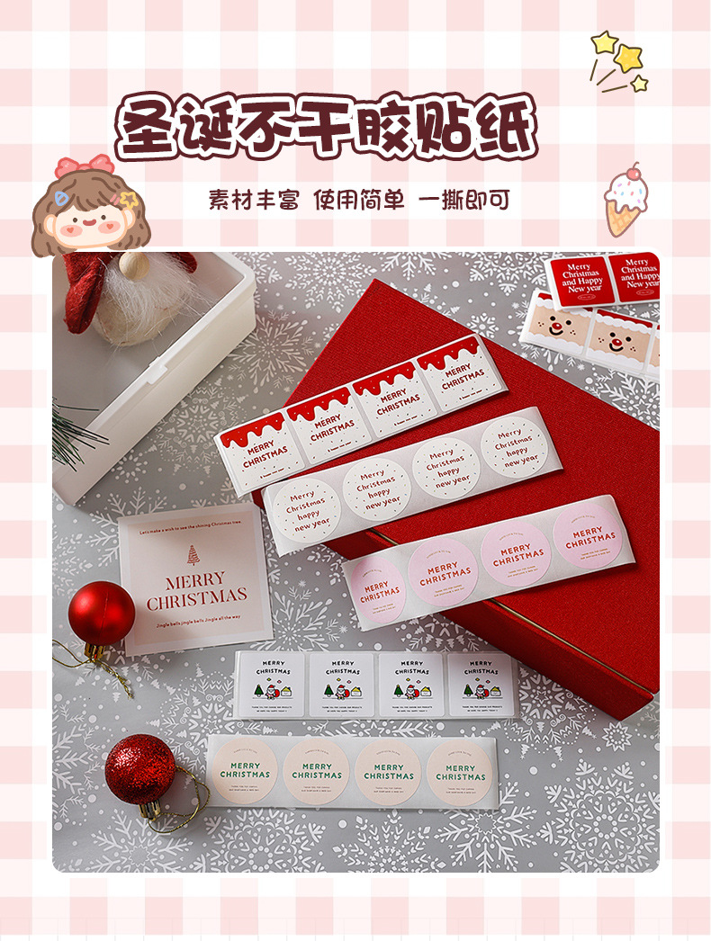 クリスマスステッカー子供女の子かわいいグッカード手帐素材纸ステッカー絵ギフト包装防水シール饰り