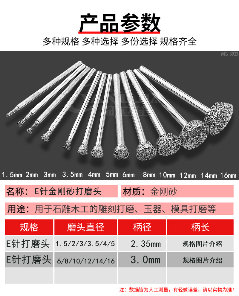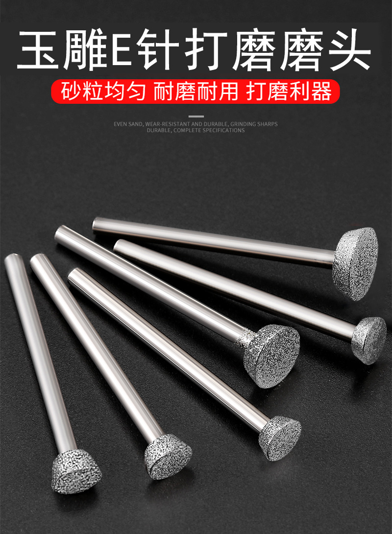 E針、金刚砂研削ヘッドe型研削針玉彫刻針金刚砂翡翠原石研磨皮むき工具