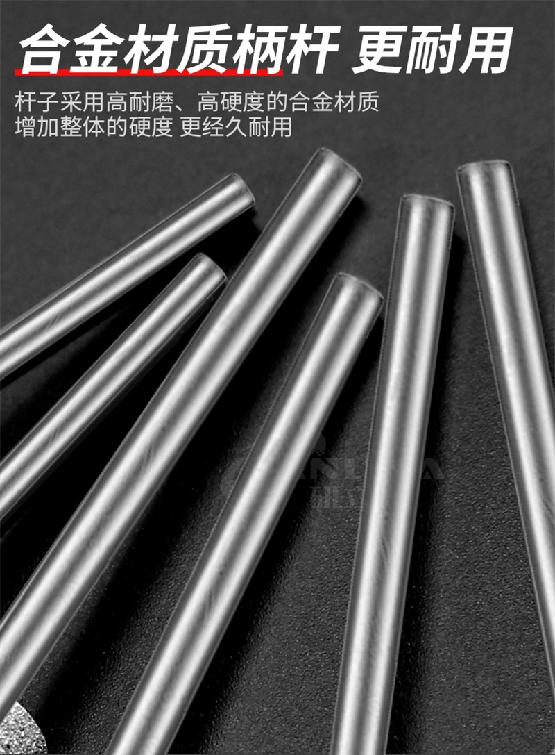 金剛砂玉彫刻ツールE針原石皮むき窓磁気砂押えヘッド彫刻瑪瑙翡翠研削針