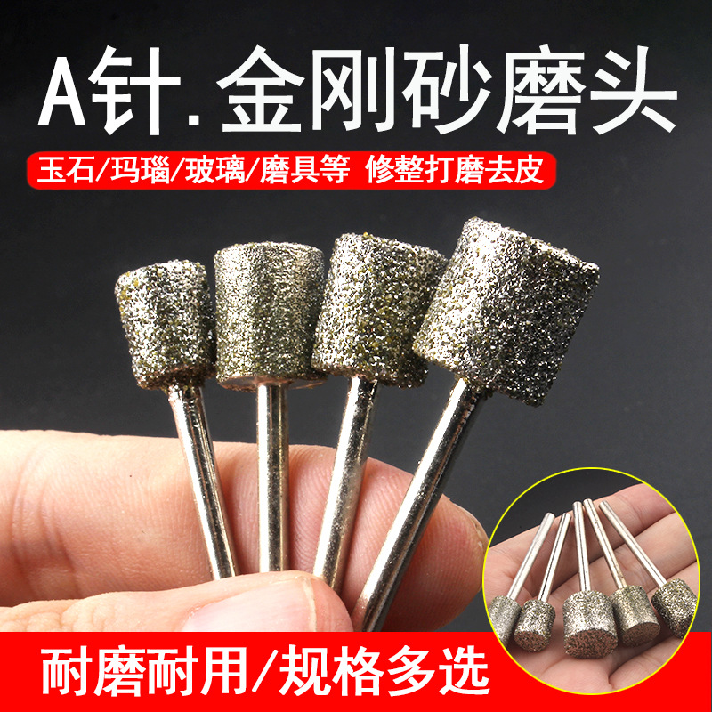 A針玉彫刻工具金刚砂研削ヘッド円柱形直研削ヘッド翡翠メノウ窓玉彫刻研削器