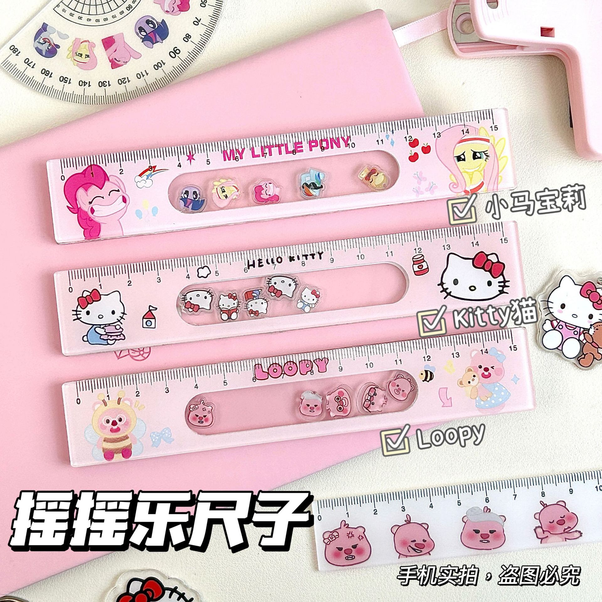 かわいいサンリオkt猫ロック直尺学生15cm高颜値漫画絵画アクリル両面物差し