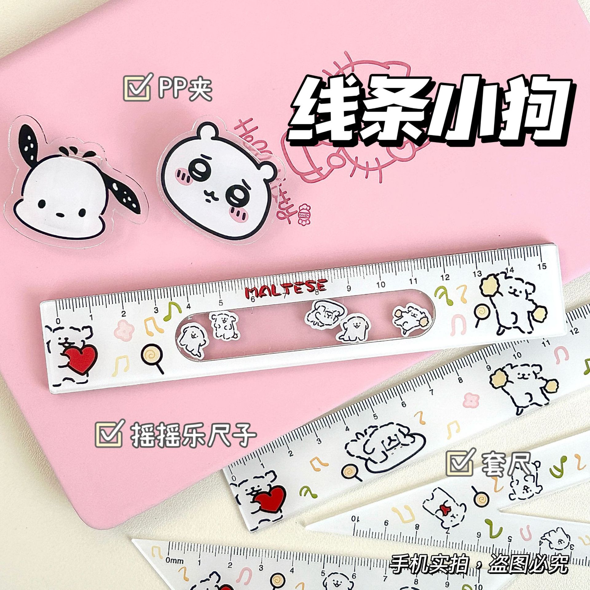新しいかわいいライン子犬のロック物差し学生文房具高颜値直尺15cm両面厚尺