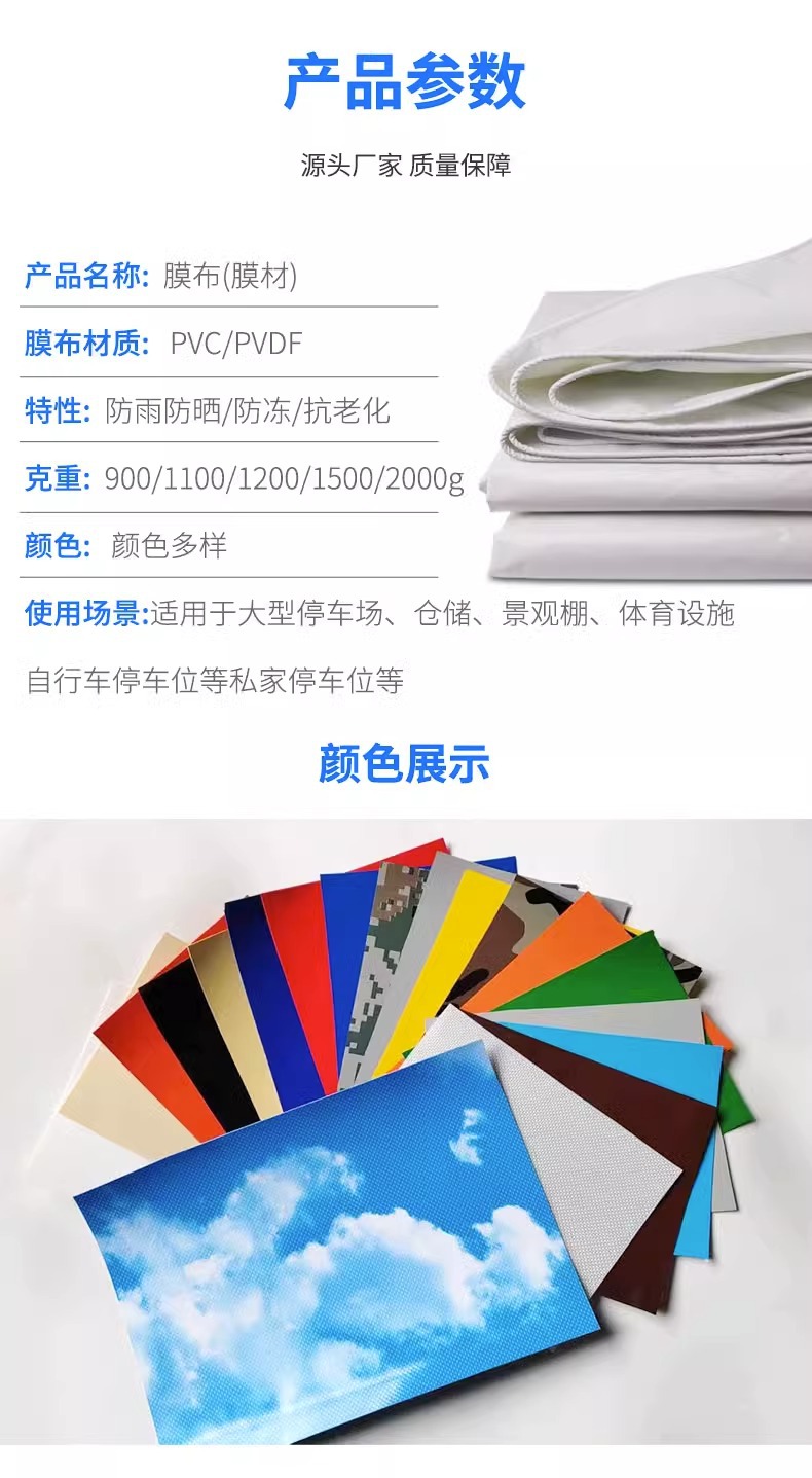 PVC車棚張拉膜布防雨布日焼け止め断熱日よけ屋外充電杭電気自動車日よけ棚膜材