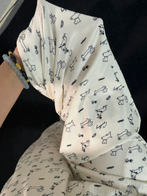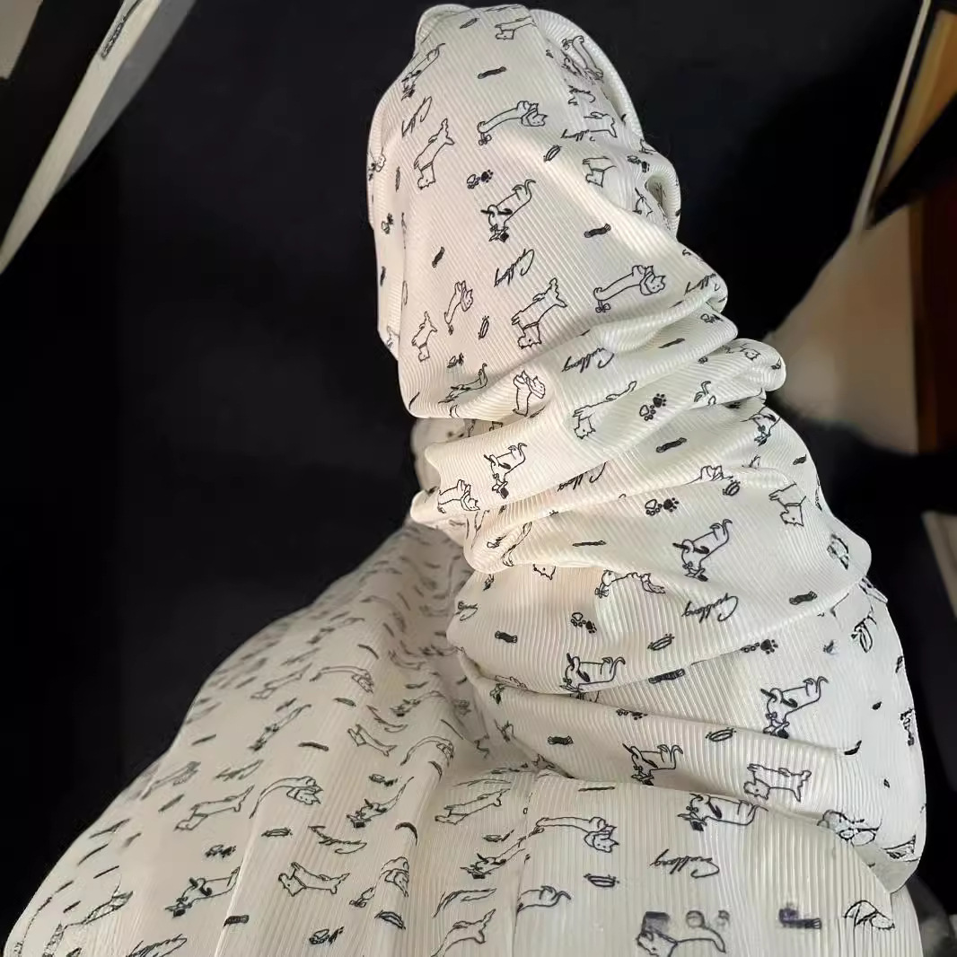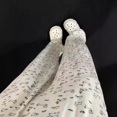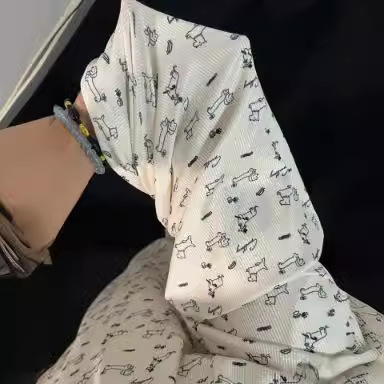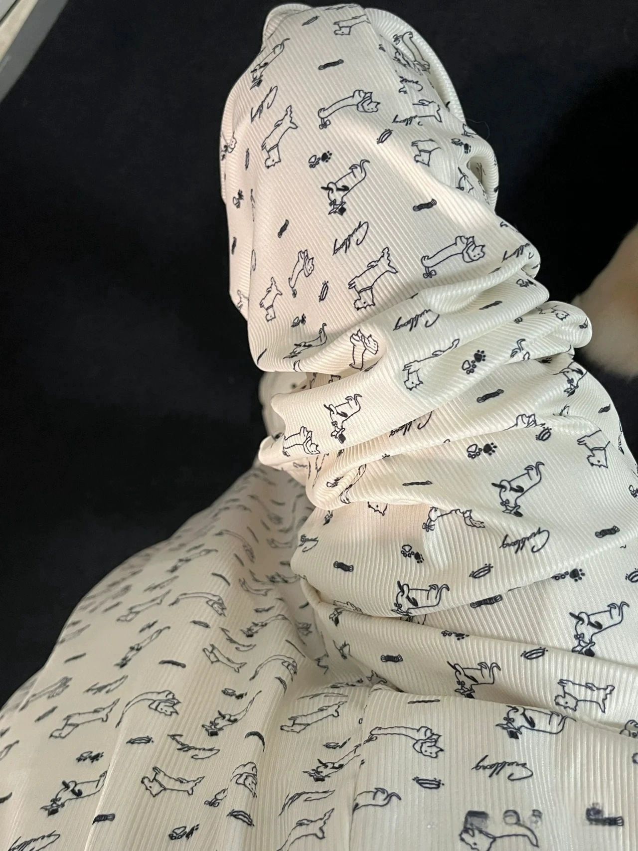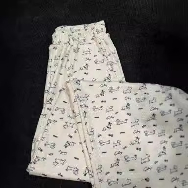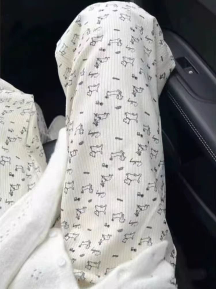 氷の糸のかわいい犬の花の広い足のズボンの女性の夏の薄いタイプの高い腰の垂れ下がった感の日よけの涼しいレジャーの散歩のズボン