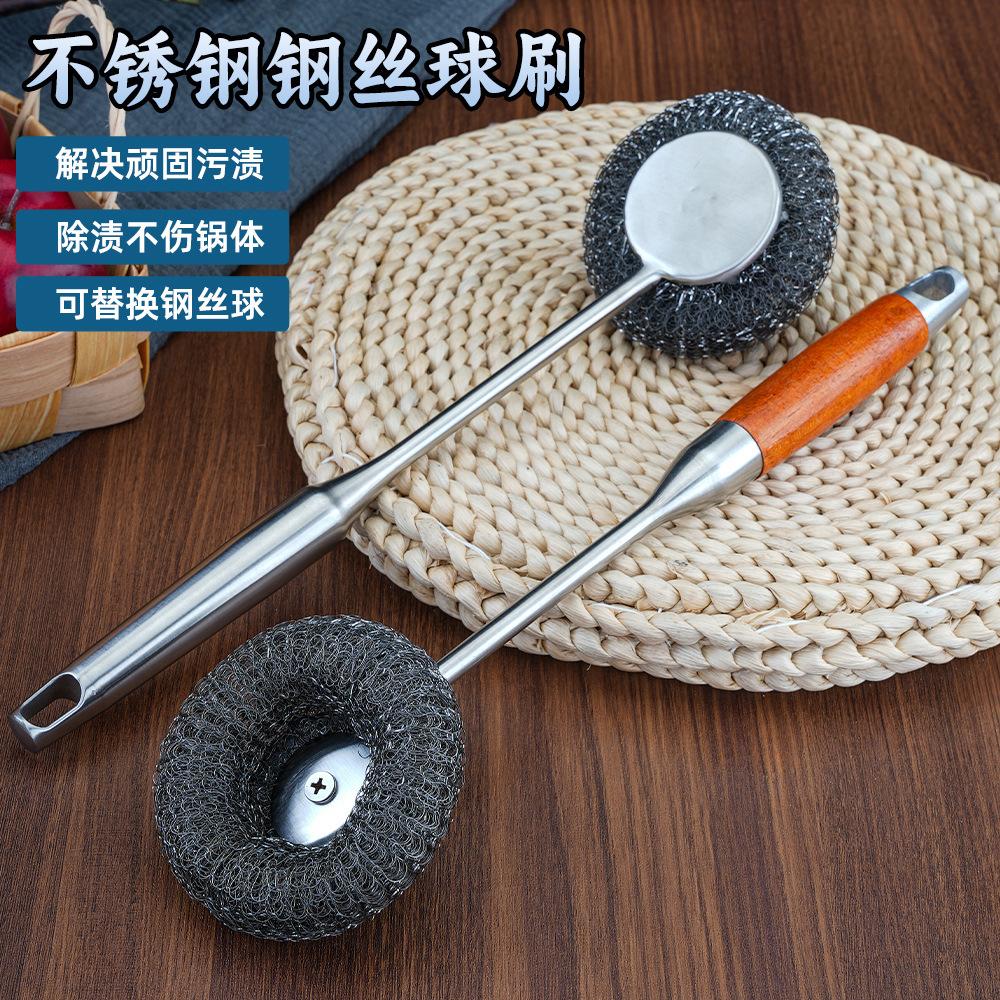 ステンレス鋼家庭用キッチンロングハンドルポットブラシ食器洗いクリーニングブラシ大型スチールワイヤーボールアーティファクト卸売家庭用家具