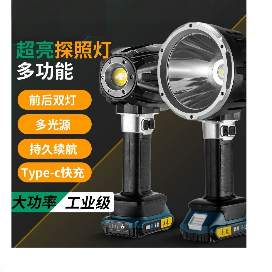 国境を越えた新しいスタイルの前後デュアルライト強力な光充電ハイパワー長寿命メンテナンスハンドヘルドサーチライト緊急懐中電灯
